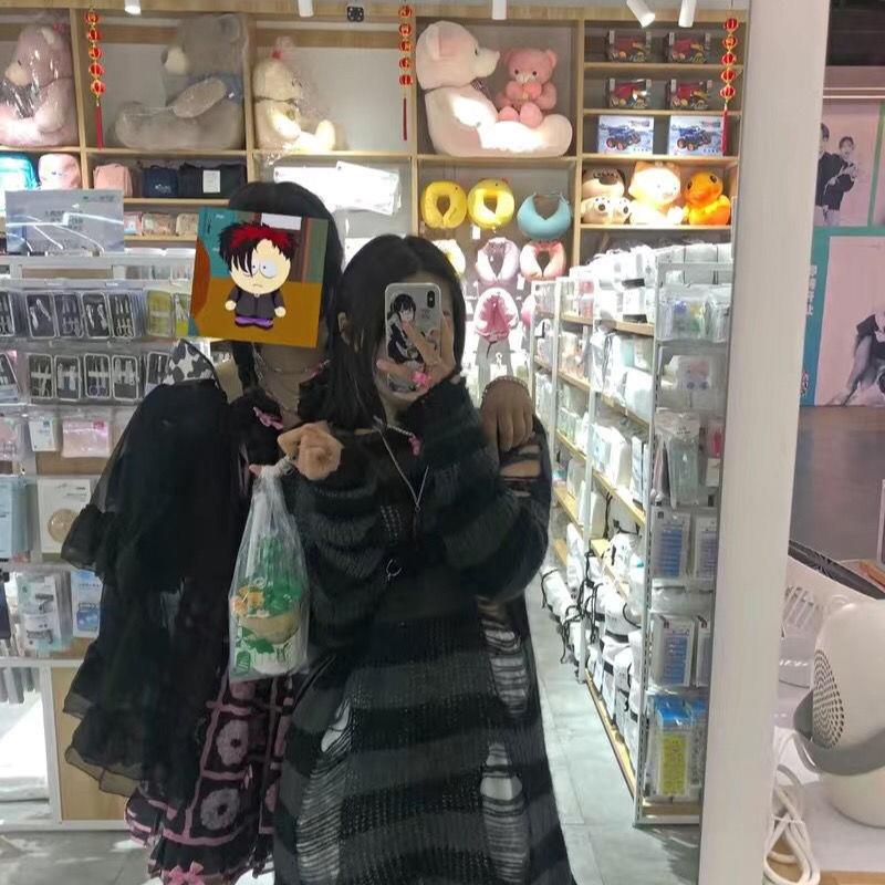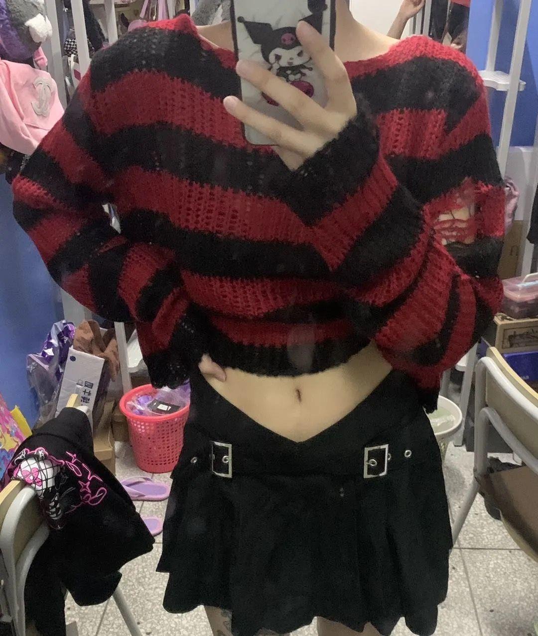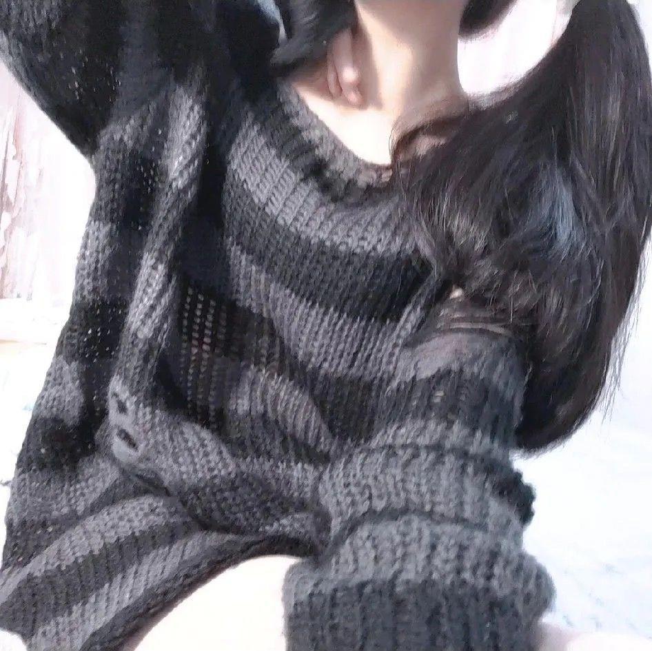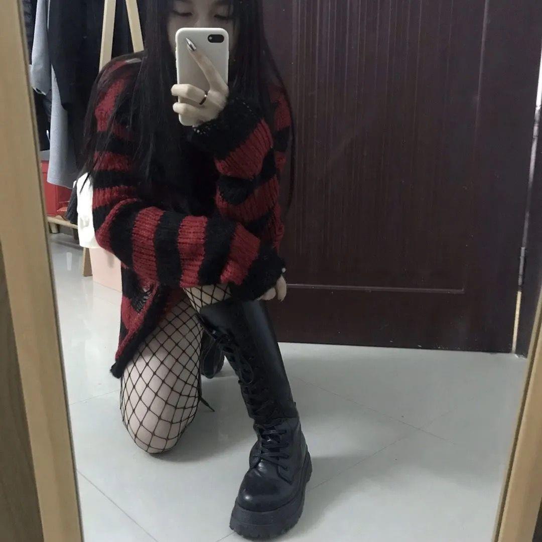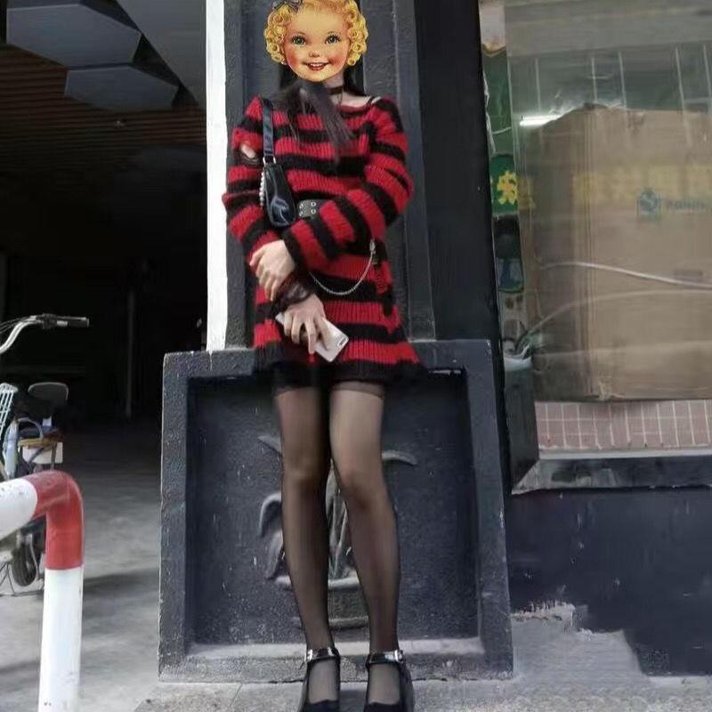한국식 홀 중공 미디 스웨터 여성용 커플 스트라이프 느슨한 인터 컬러 다크 모든 매치 니트 의류 틈새스토어 가기