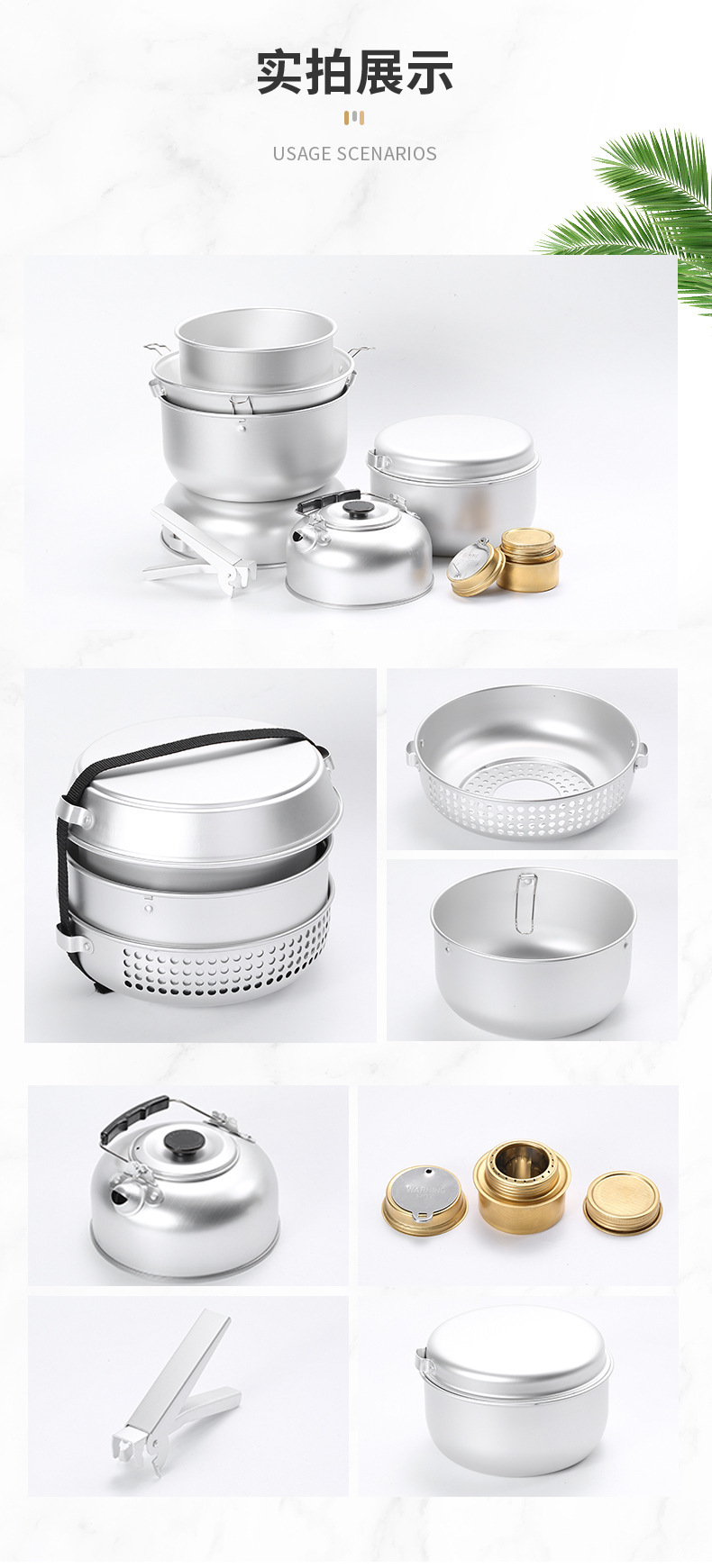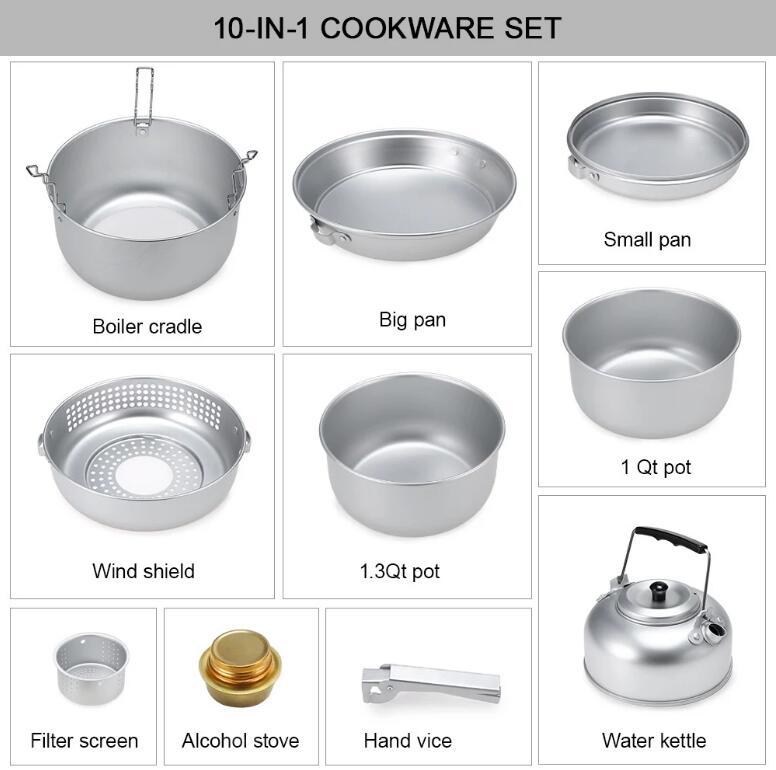 Name: 10 pcs Outdoor Portable Aluminum Camping cook set