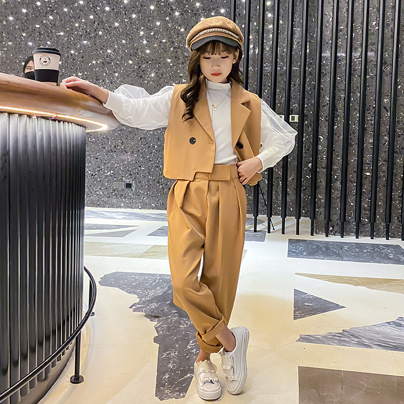 여아 신상 정장 조끼 3종 세트 2024 봄 가을 한국 스타일 아동복 베이비 패션 인터넷 연예인 슈트스토어 가기