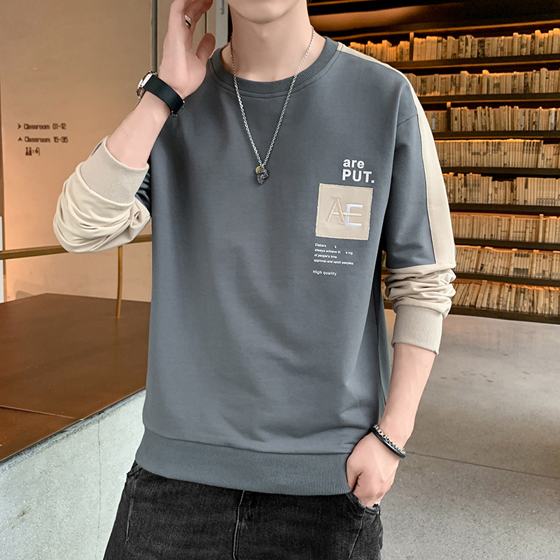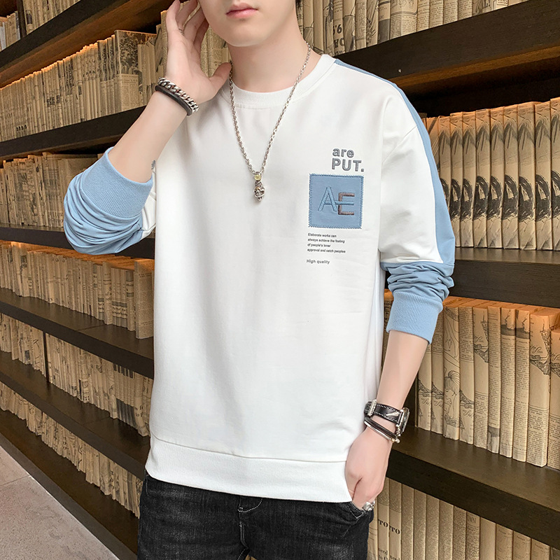 2022 새로운 봄 가을 긴팔 티셔츠 남성용 한국 스타일 십대 라운드 넥 베이스 셔츠 유행 스웨터 남성복스토어 가기