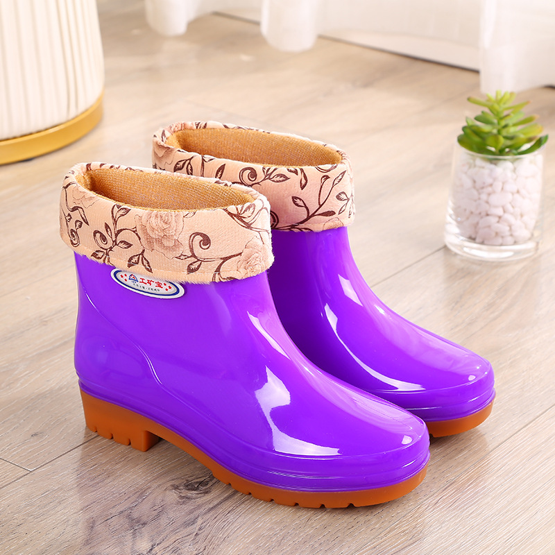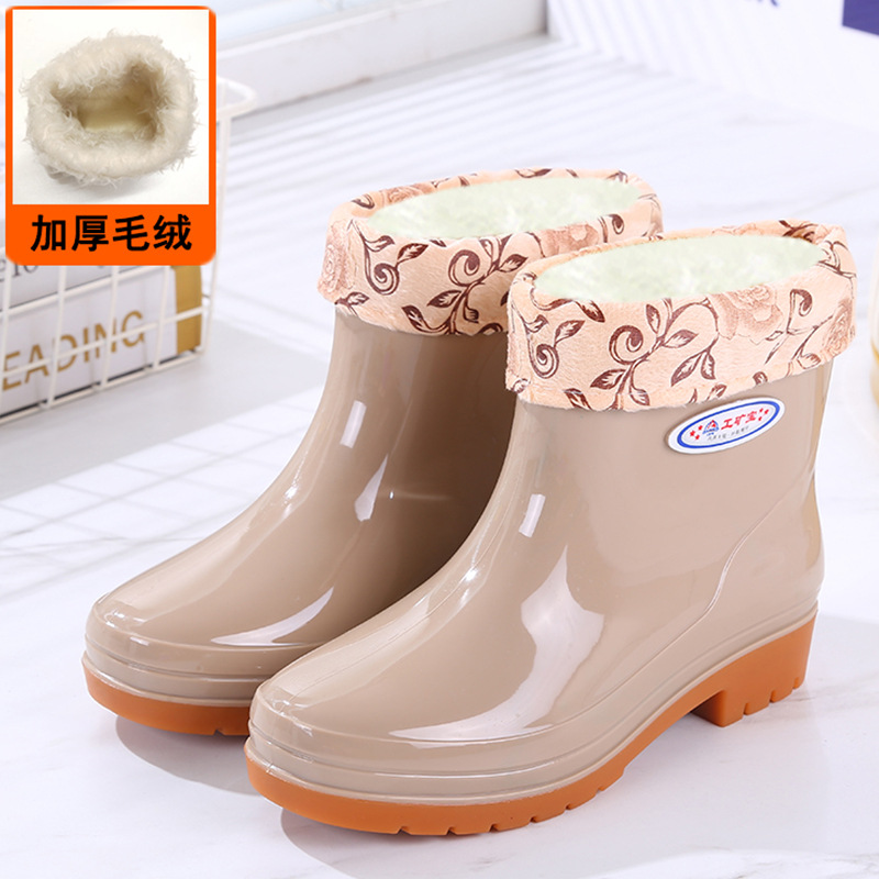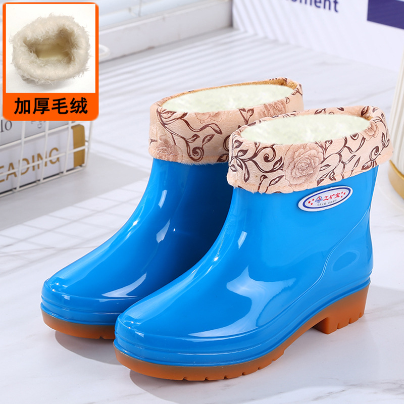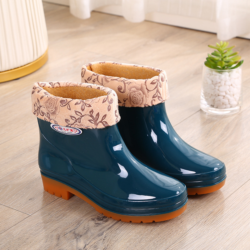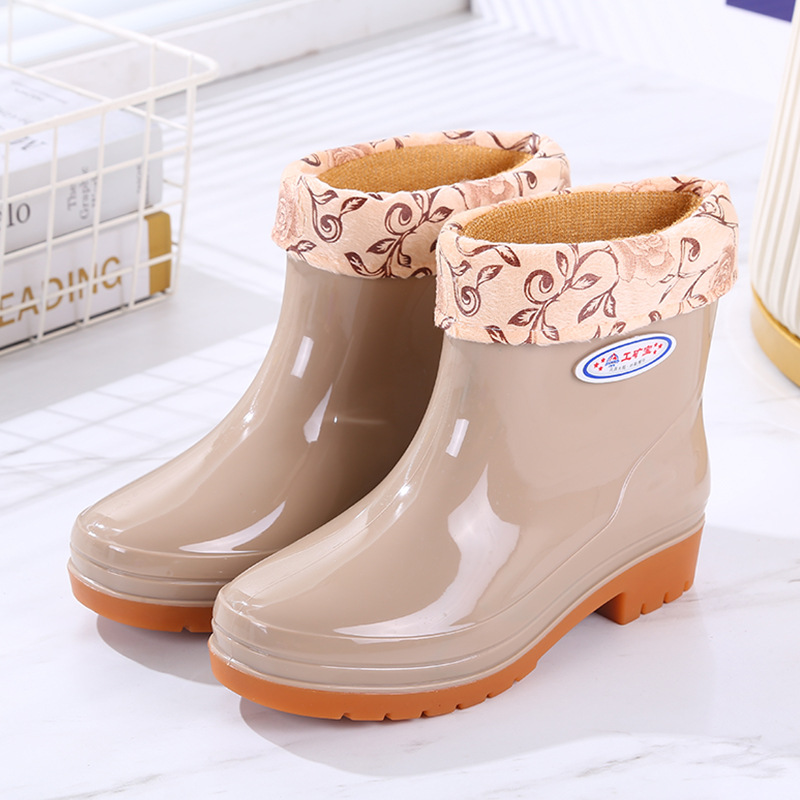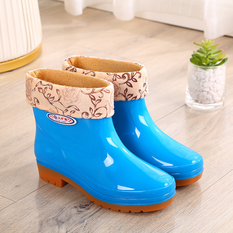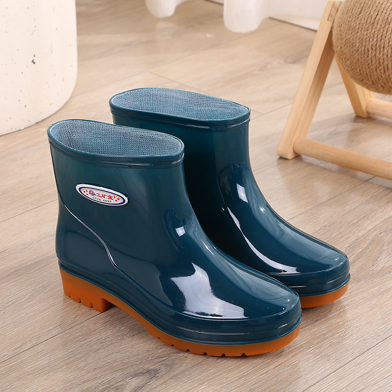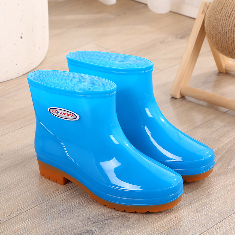 두꺼운 새 장화 워터 부츠 장화 여성용 짧은 튜브 내마모성 미끄럼 방지 작업 워터 부츠 여성용 성인 방수 접착제 신발 커버 신발스토어 가기