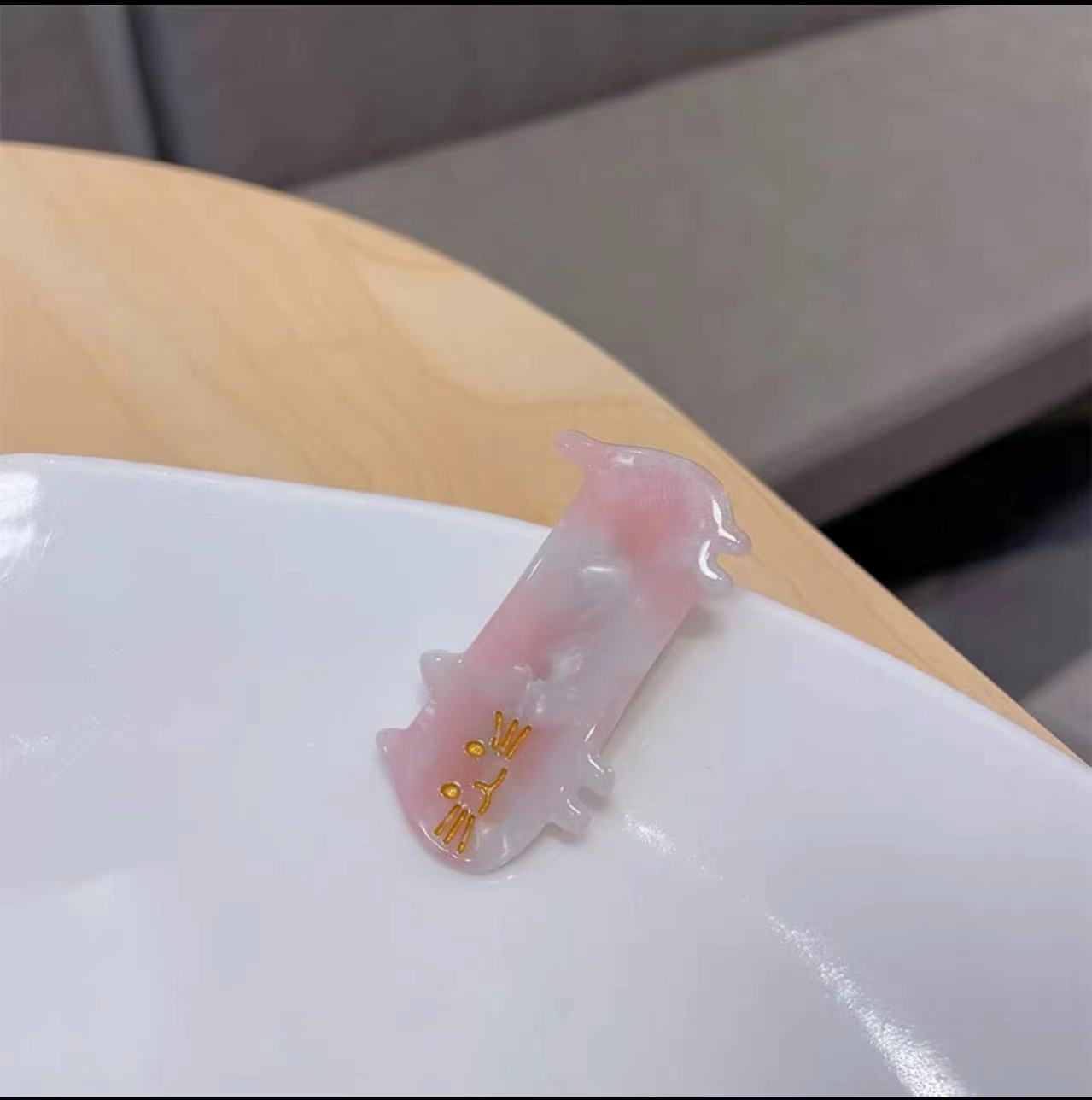• 핑크 흰색 그라디언트 고양이 (약 5cm 길이)