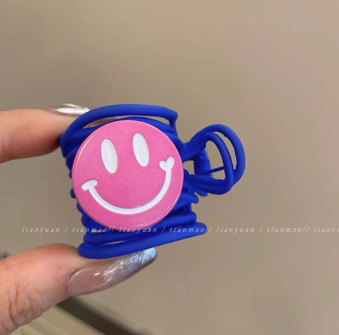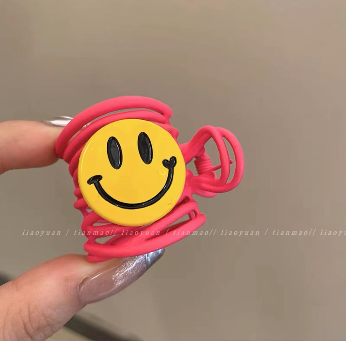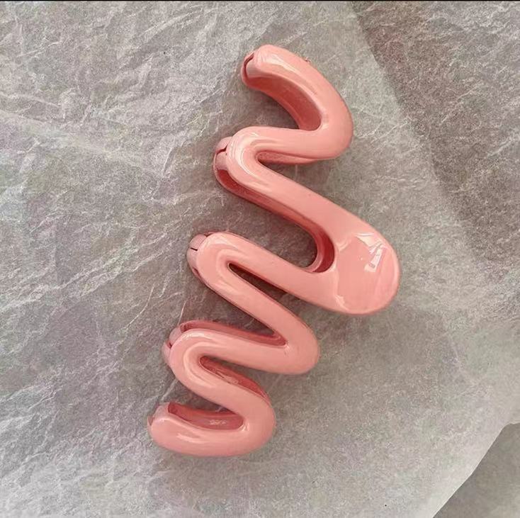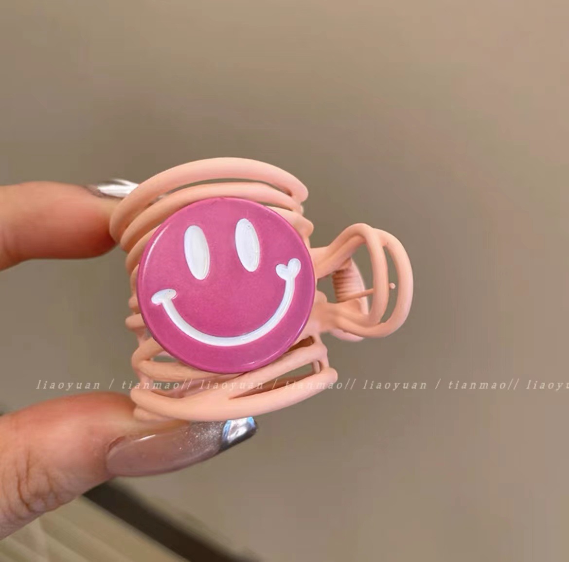 • 핑크 메탈릭 스마일 포니테일 클립