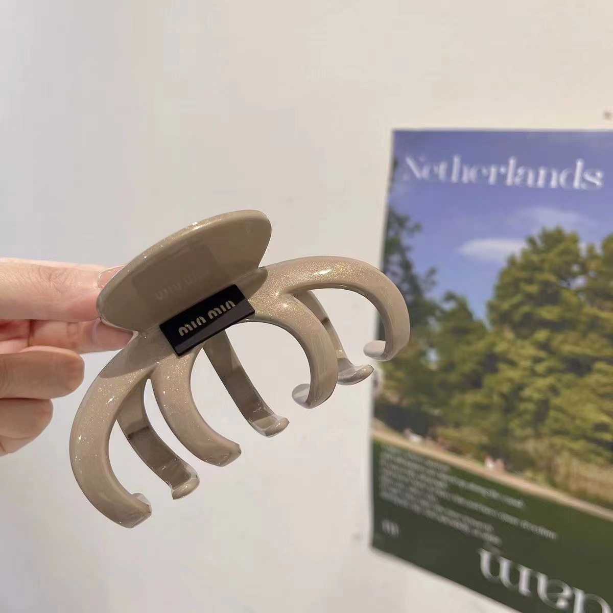 • 밀크티 컬러 반달 머리핀