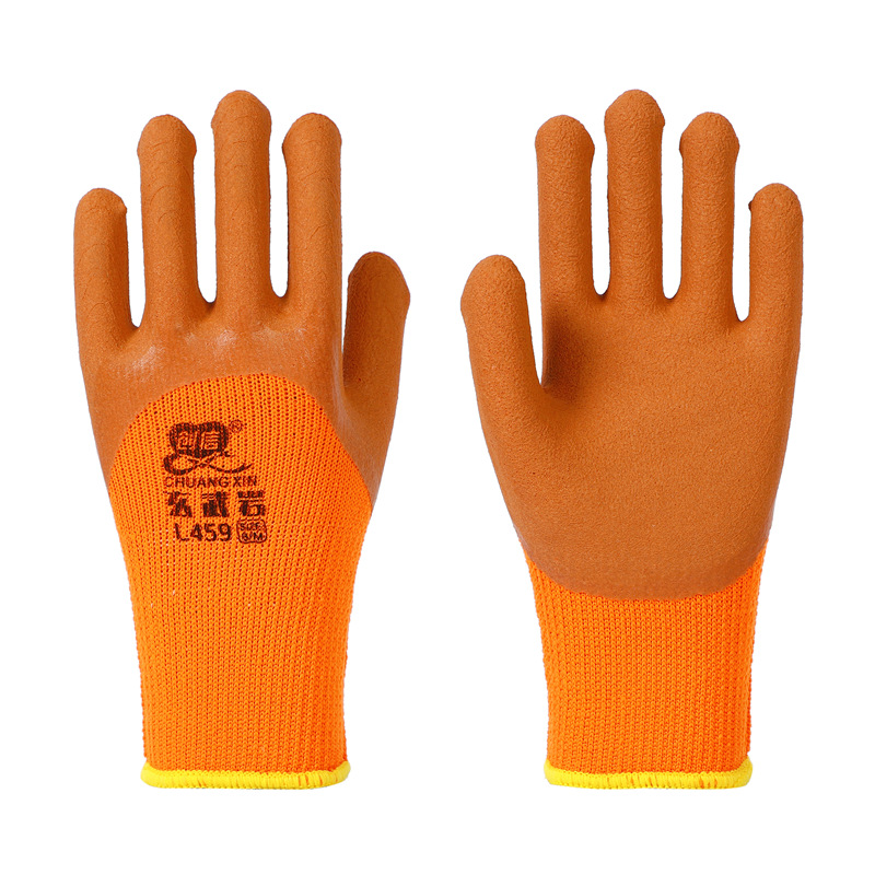 Chuangxin L459 현무암 테리 기모 라텍스 폼 반 매달린 디핑 장갑 노동 보호 미끄럼 방지 내마모성 고무 장갑스토어 가기