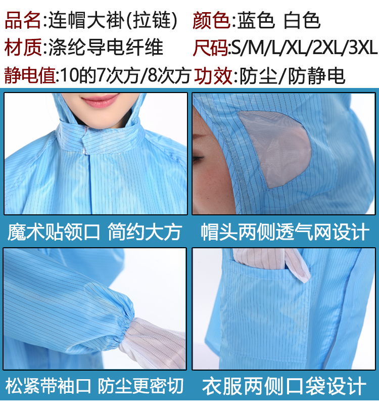 정전기 방지 옷 후드 가운 남성용 지퍼 먼지없는 깨끗한 방진 화이트 블루 작업 여성용 툴링 작동 가능