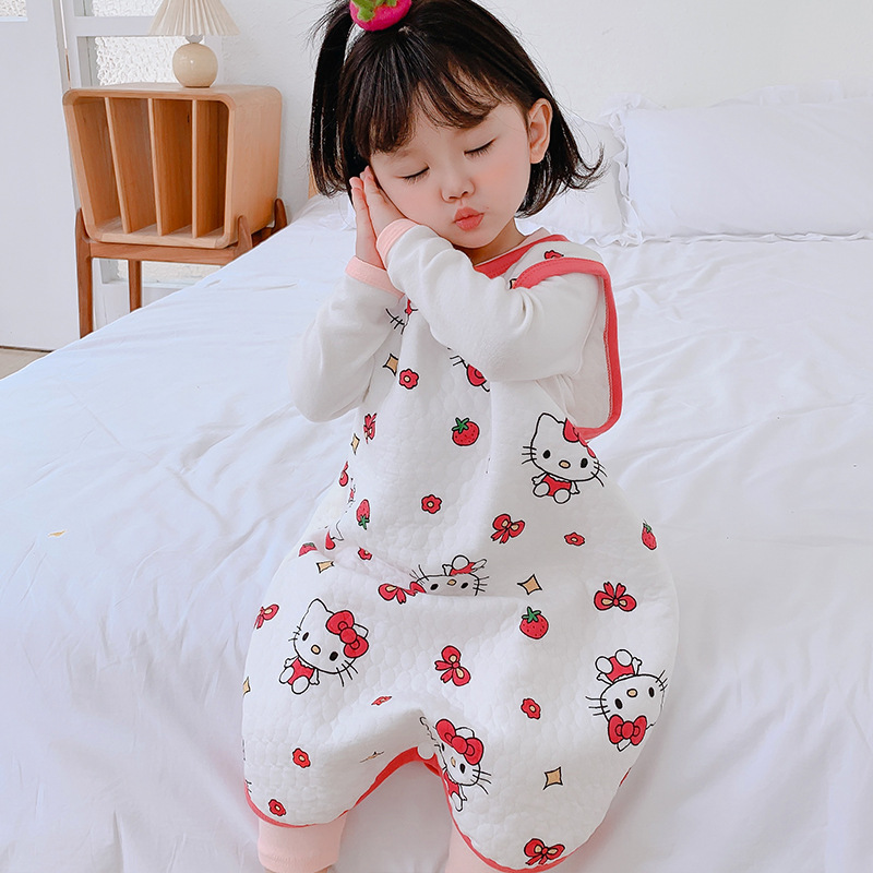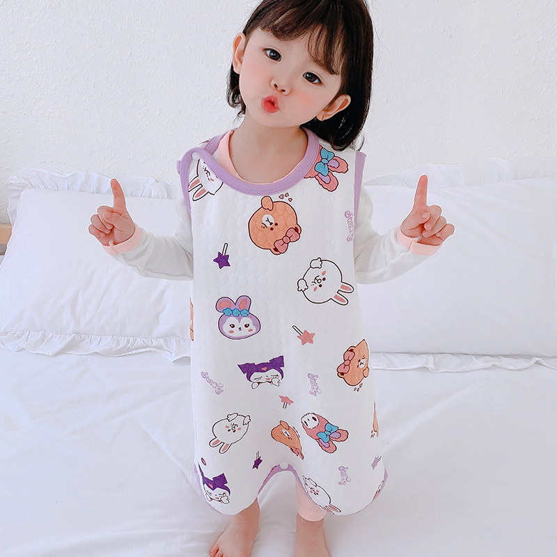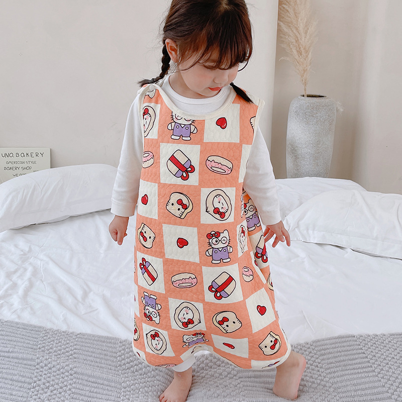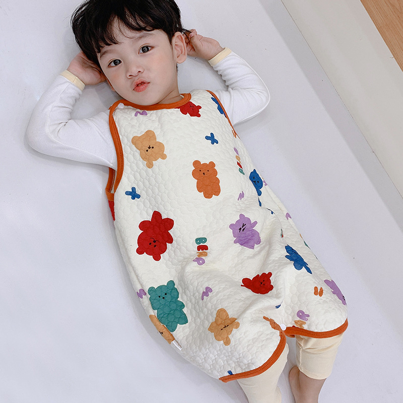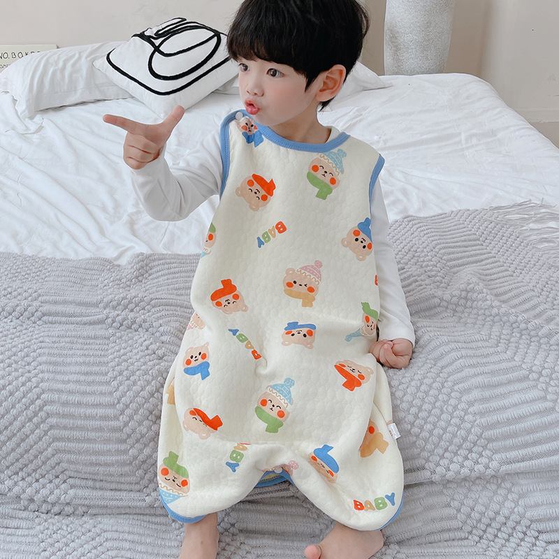 아기 침낭 민소매 면 봄 가을 겨울 분할 다리 조끼 어린이 킥 방지 아기 배꼽 보호대 사계절스토어 가기