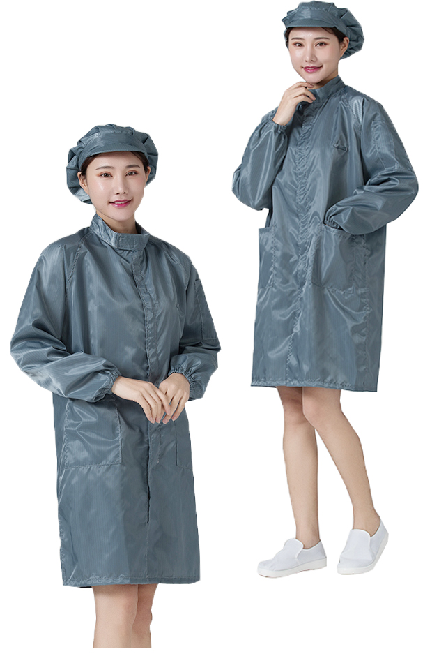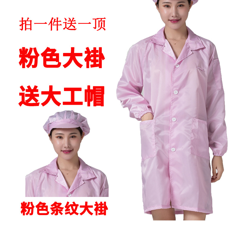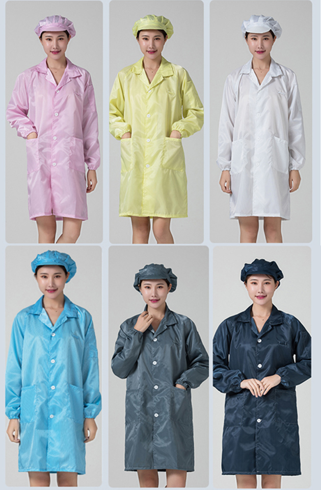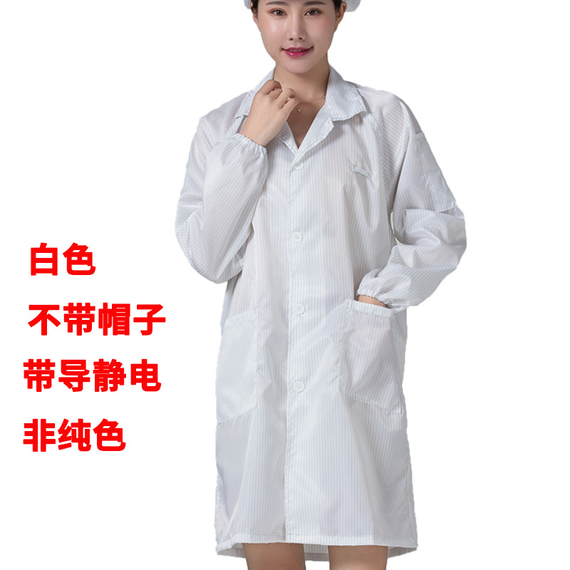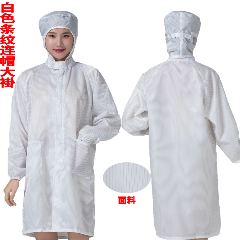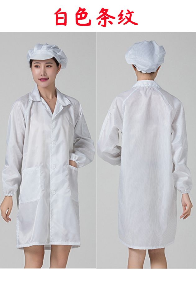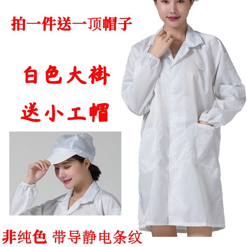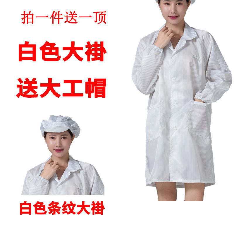 • 흰색 정전기 코트 + 큰 작업자 모자