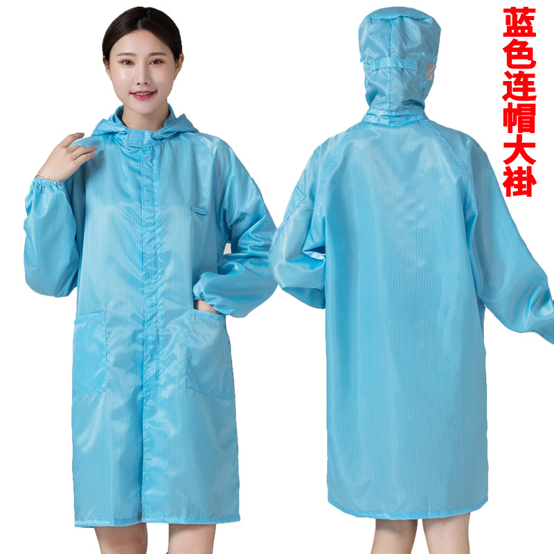 작업 방진 의류 먼지없는 정전기 방지 의류 실험실 재킷 긴 파란색과 흰색 후드 작업장 안티 산업 먼지 빨