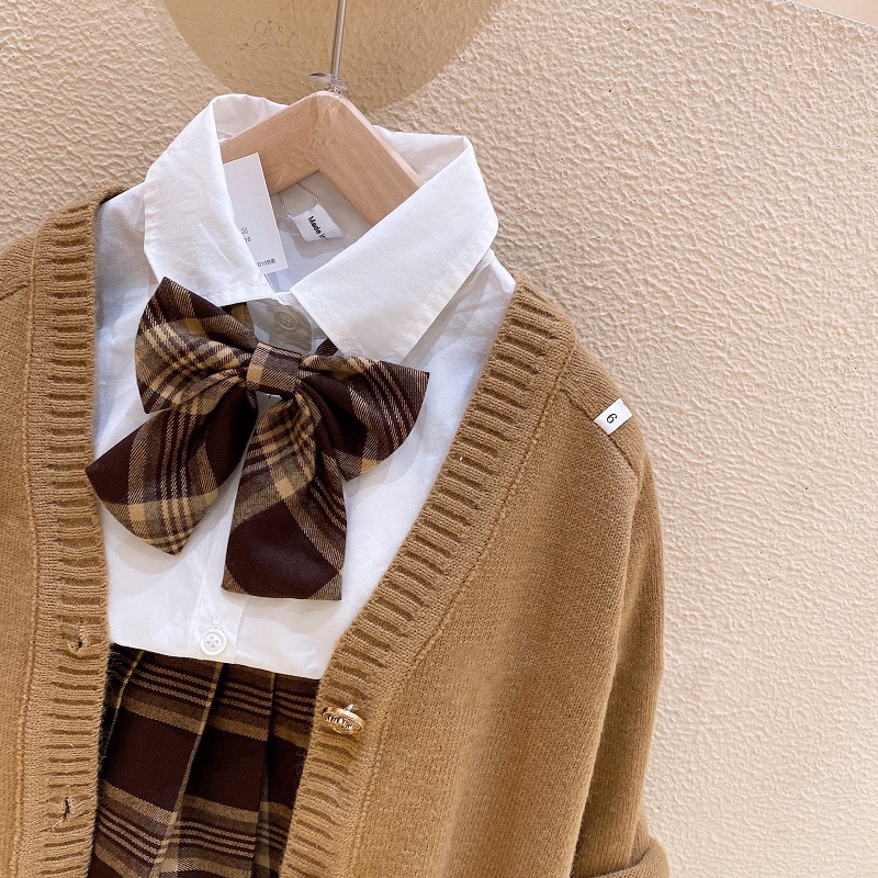 2025 가을 신상 아동복 도매 여아용 컬리지 스타일 셔츠+플리츠 스커트 세트 JK 세트스토어 가기