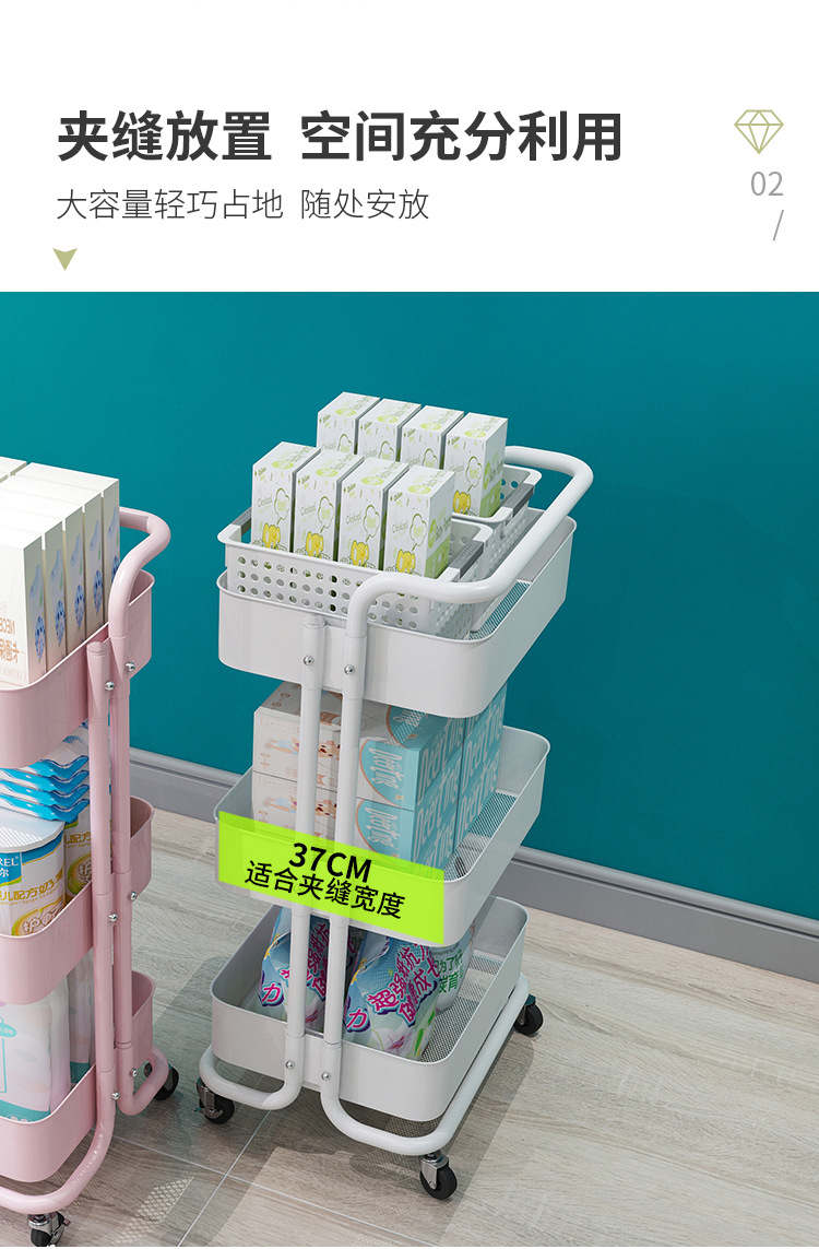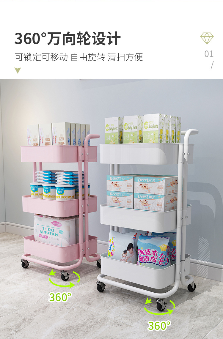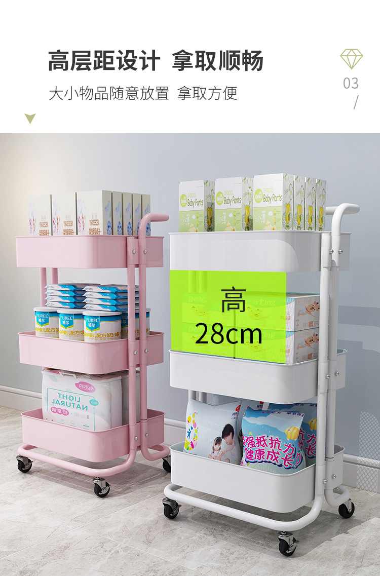 이동식 다기능 스토리지 랙 아기 제품 유모차 주방 다층 보관 자동차 금속 바퀴 달린 스토리지 랙
