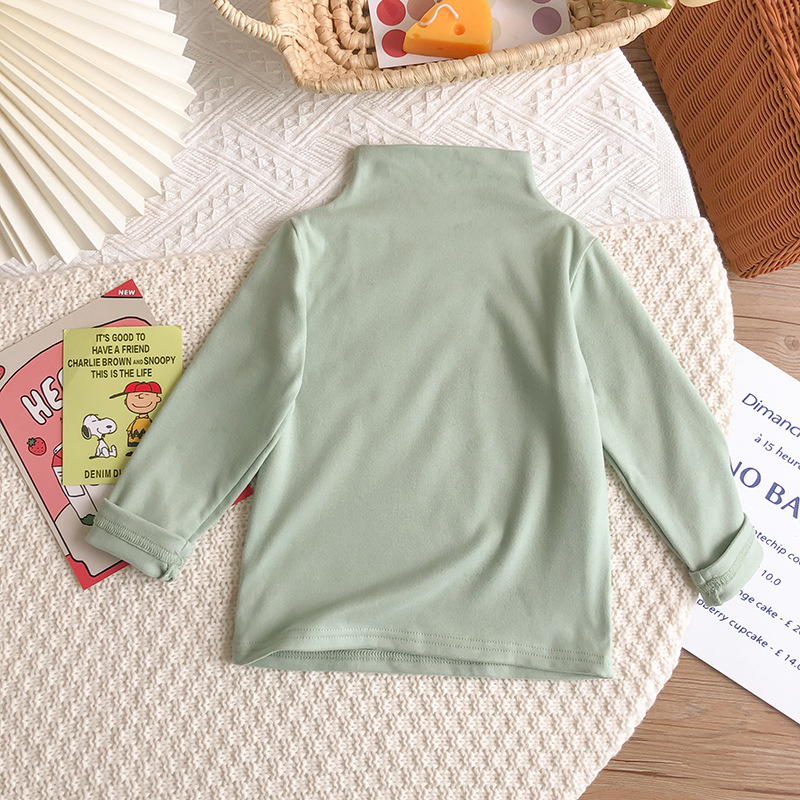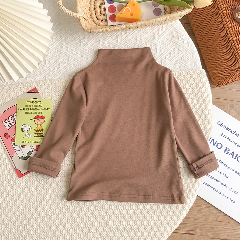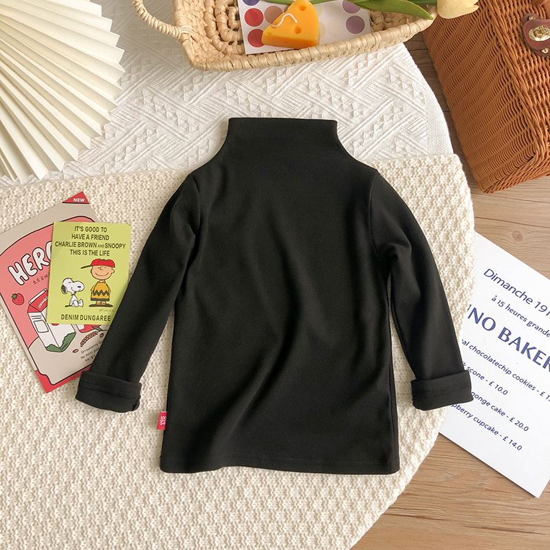 가을과 겨울 새로운 어린이 베이스 셔츠 여아 아기 양털 하프 터틀넥 기모 내부 두꺼운 남성용 모든 매치 긴팔 의류