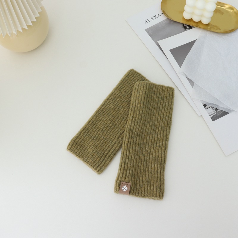 가을과 겨울 반 손가락 울 장갑 여성용 두꺼운 따뜻한 노출 손가락 터치 스크린 니트 노출 손가락 장갑 슬리브 손목 보호대