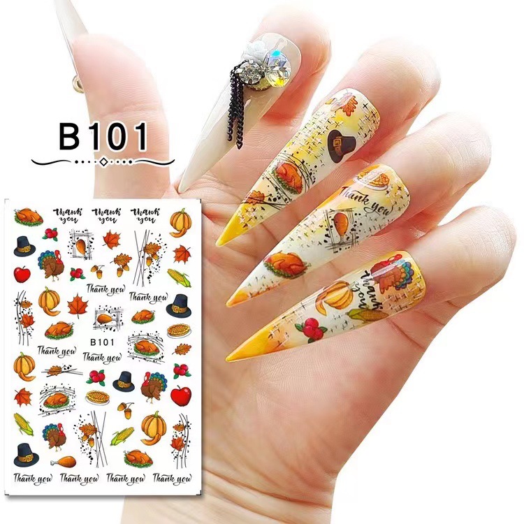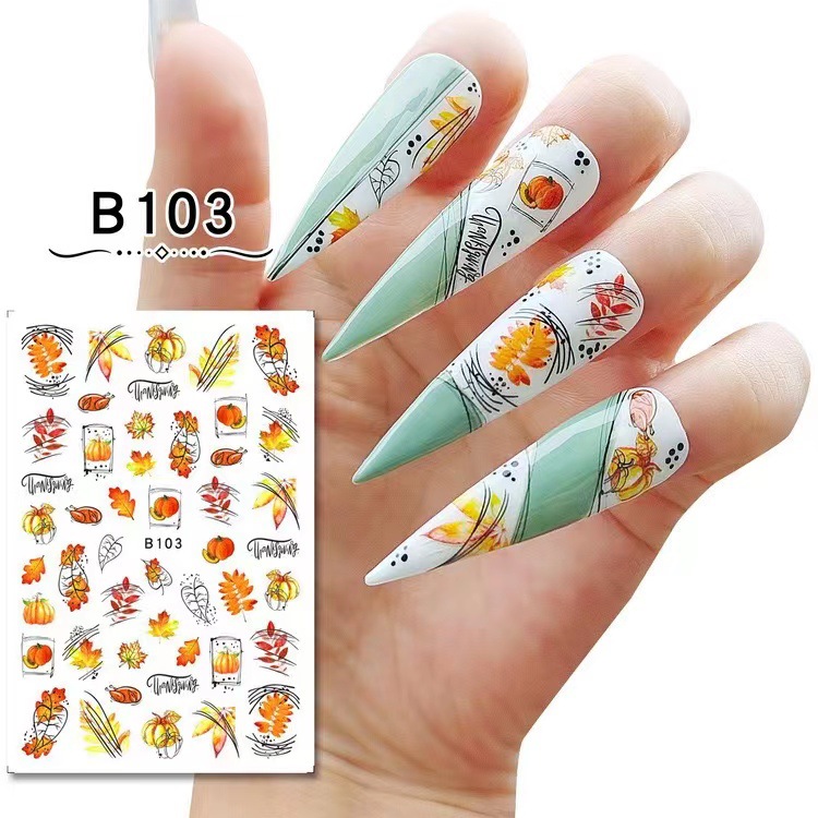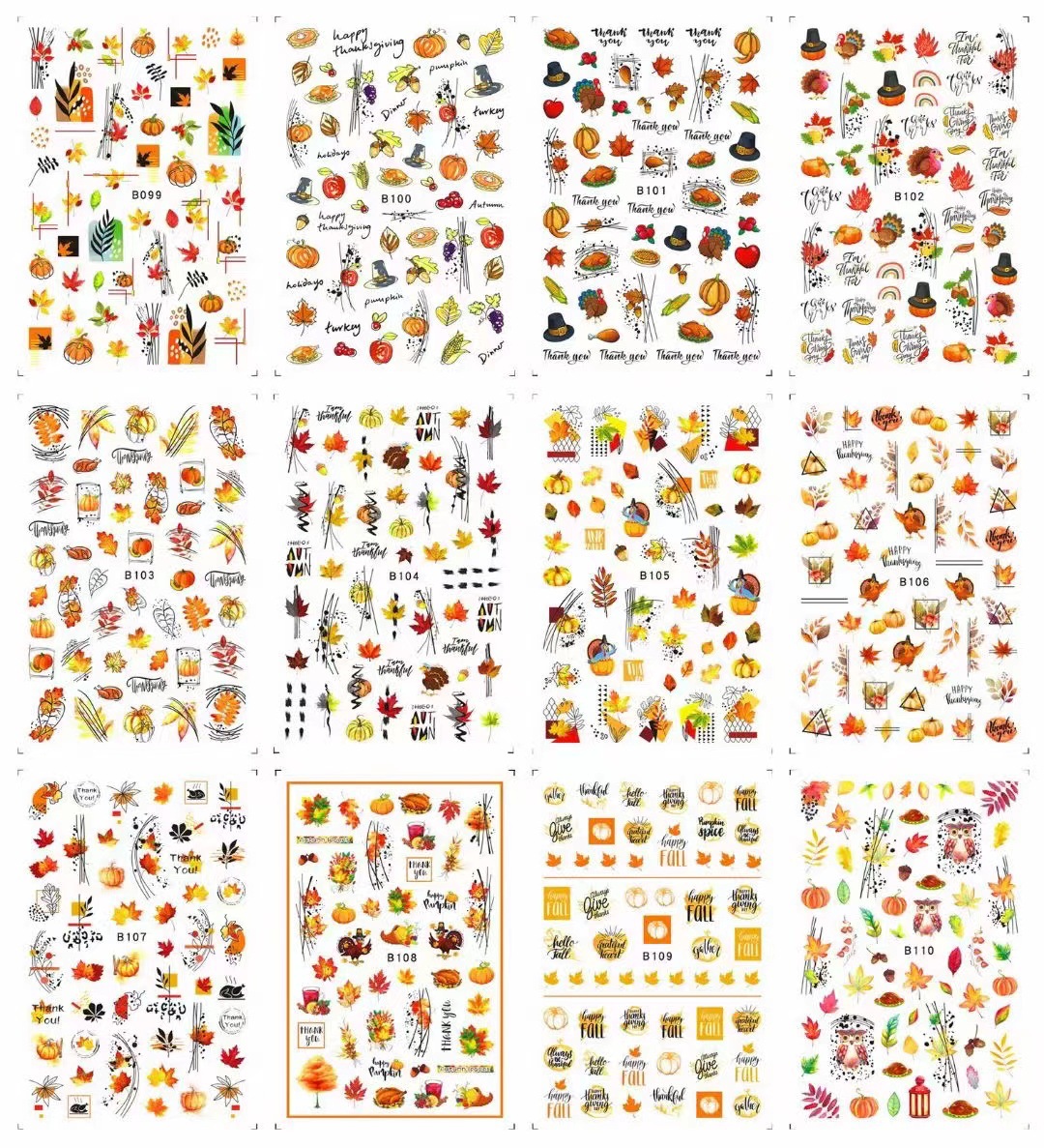 네일 데칼 크로스 국경 공급 가을 추수 감사절 시리즈 B099-B110 접착제는 단일 세트 수 있습니다 세트스토어 가기