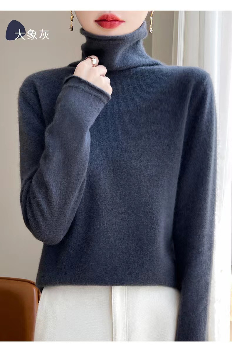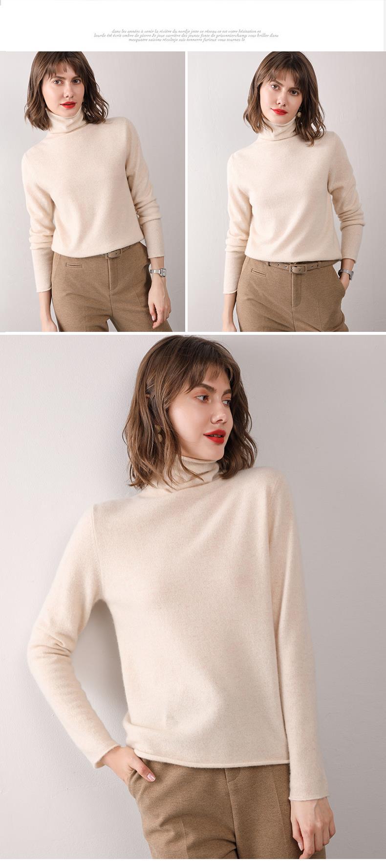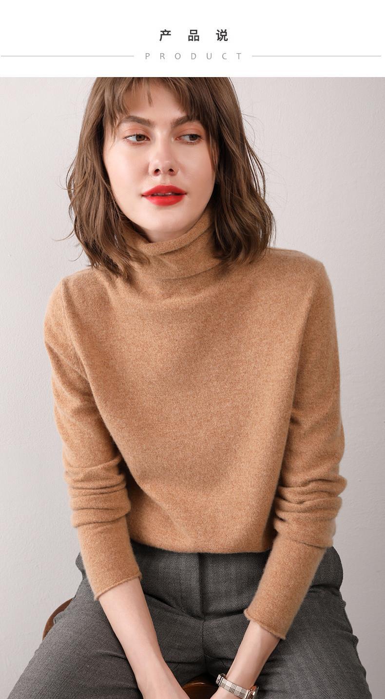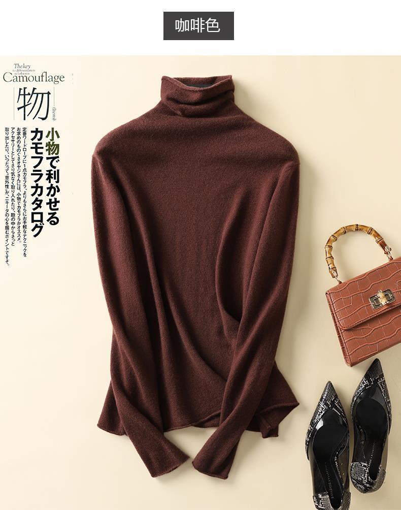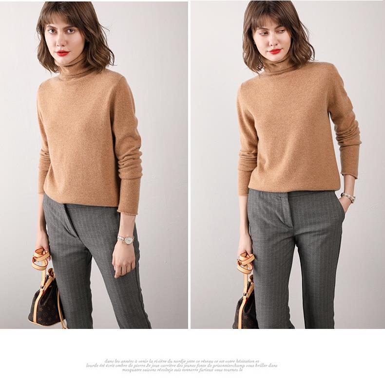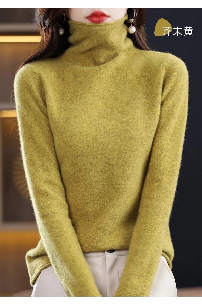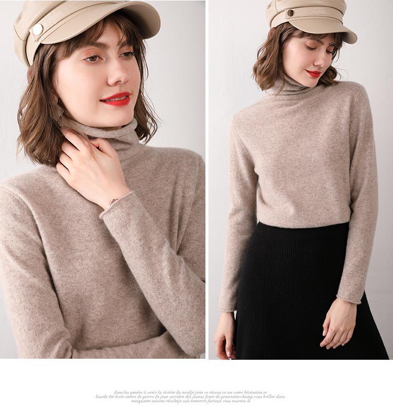 여성용 가을 겨울 스타일리쉬한 터틀넥 울 스웨터, 얇은 니트 베이스 스웨터, 긴 소매, 우아한 디자인스토어 가기