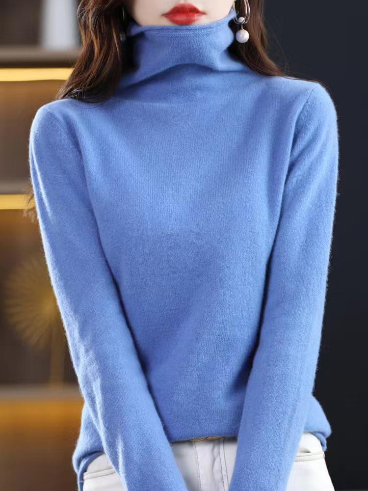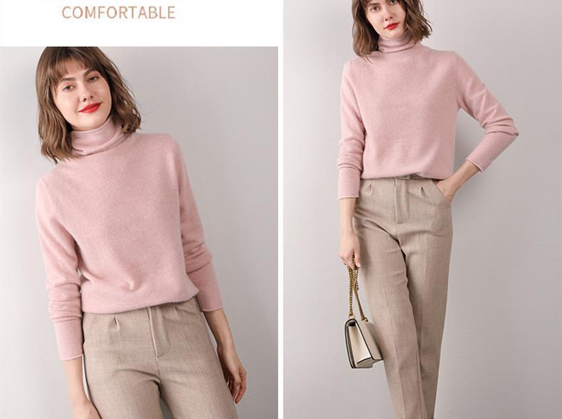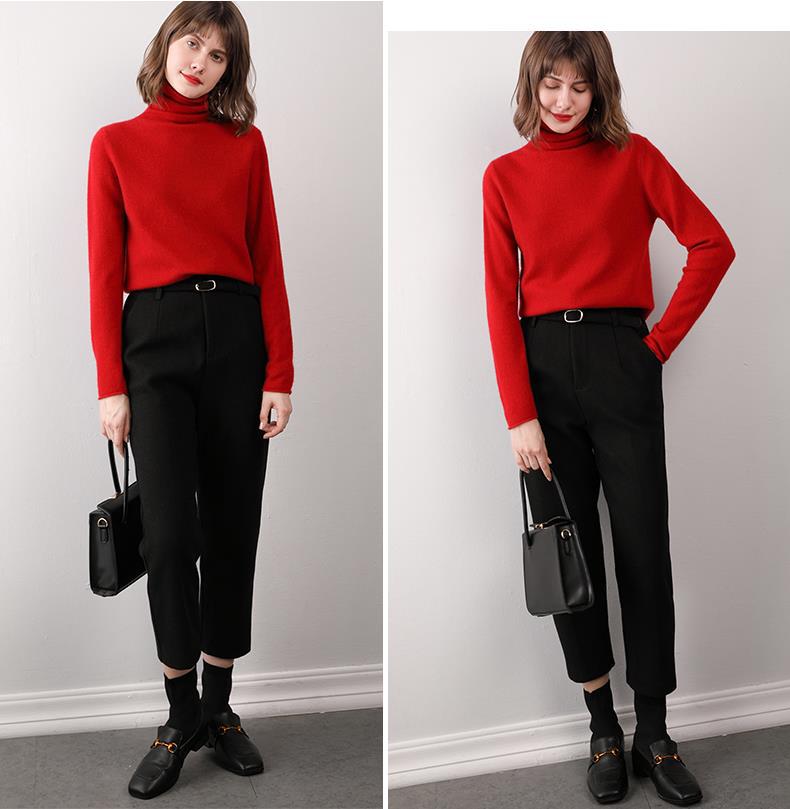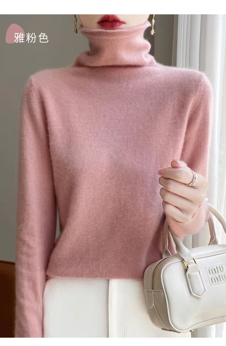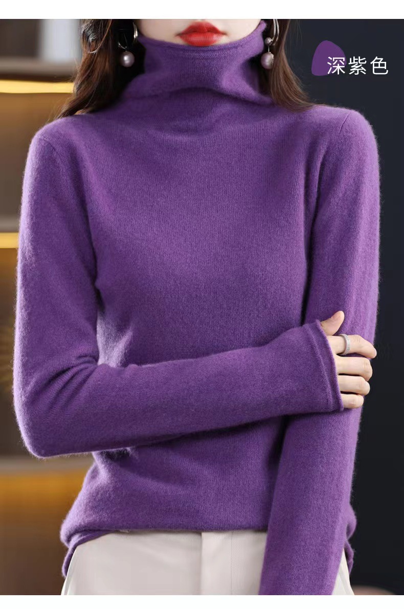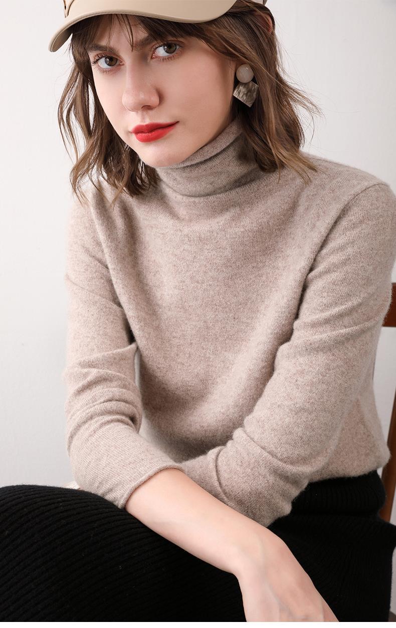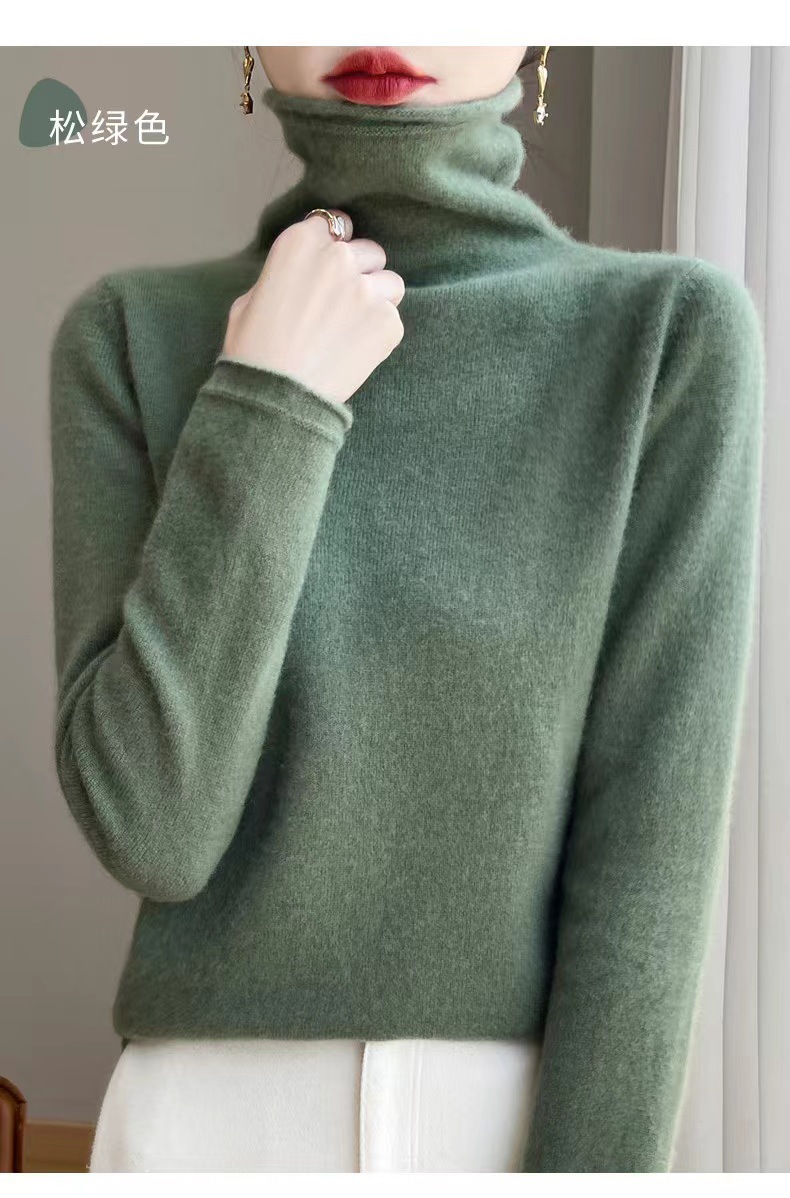 여성용 가을 겨울 스타일리쉬한 터틀넥 울 스웨터, 얇은 니트 베이스 스웨터, 긴 소매, 우아한 디자인스토어 가기