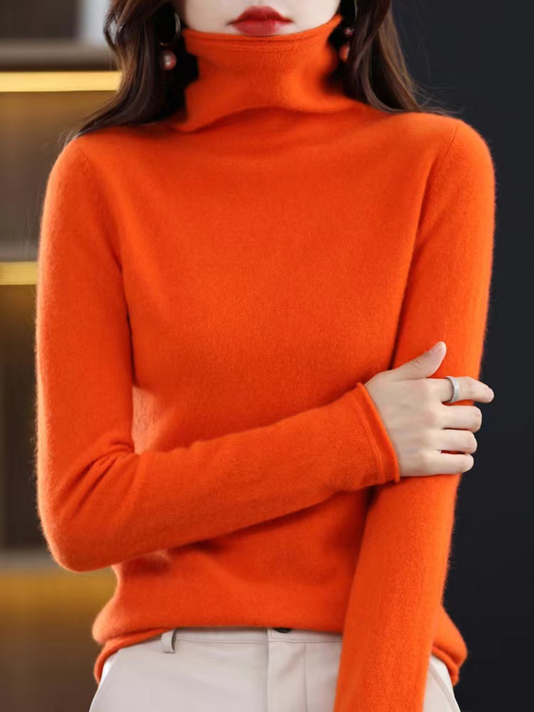 여성용 가을 겨울 스타일리쉬한 터틀넥 울 스웨터, 얇은 니트 베이스 스웨터, 긴 소매, 우아한 디자인
