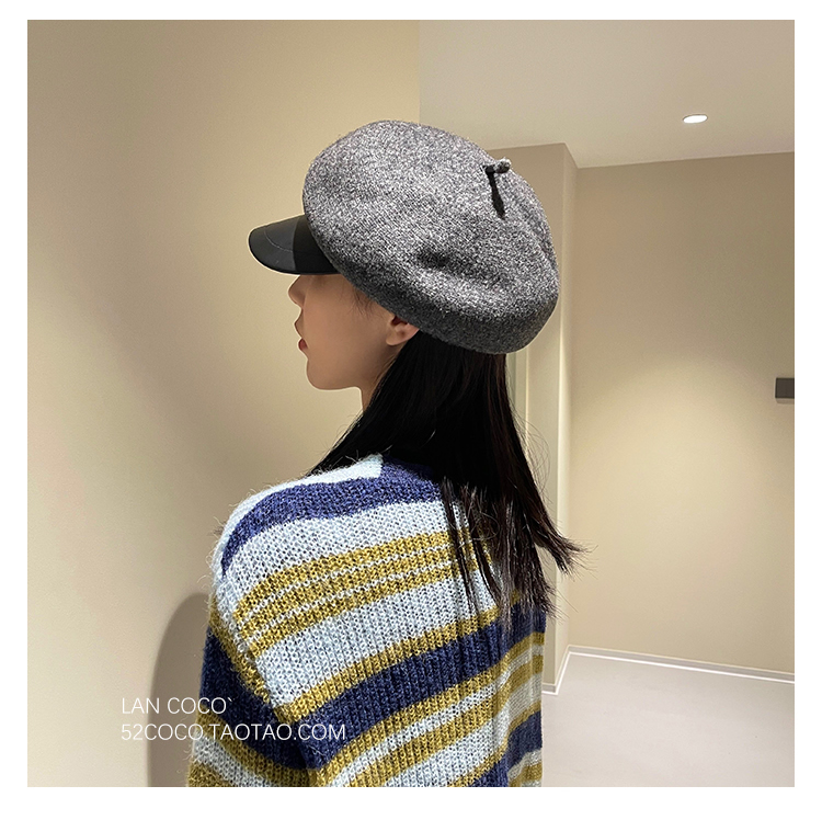 일본 모직 가죽 영국 빈티지 오리 혀 팔각형 모자 여자의 얼굴 작은 예술적 베레모 모든 경기 뉴스 보이 모자 남자스토어 가기