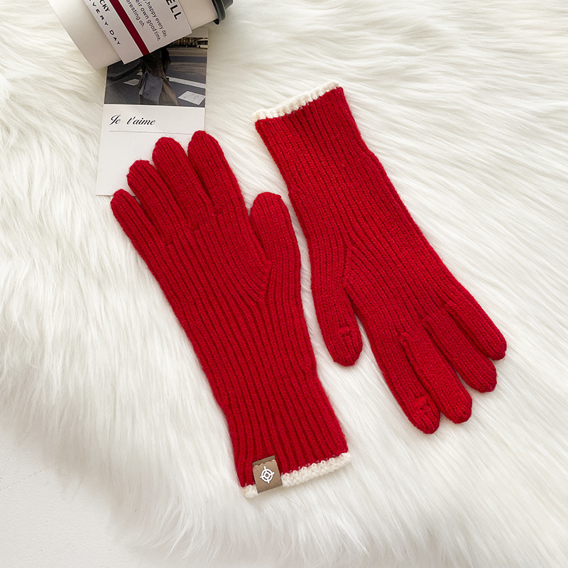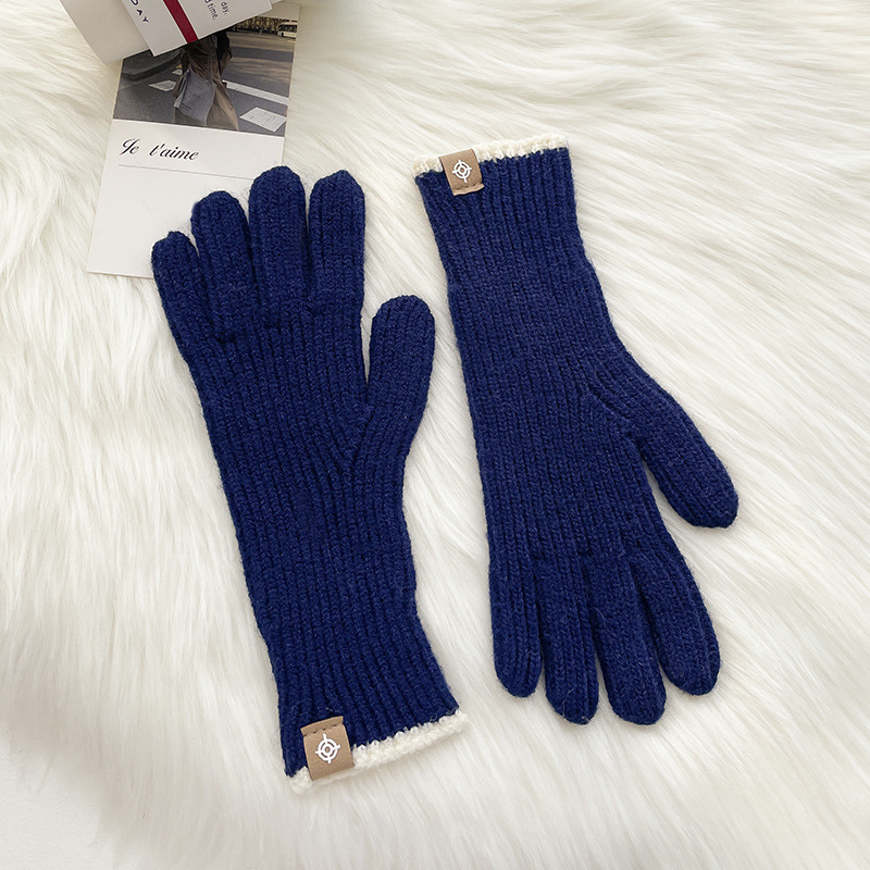 Klein Blue Wool 니트 단색 한국 장갑 가을과 겨울에 따뜻하게 유지하기 위해 손가락 노출 손가락 터치 스크린을 라벨링