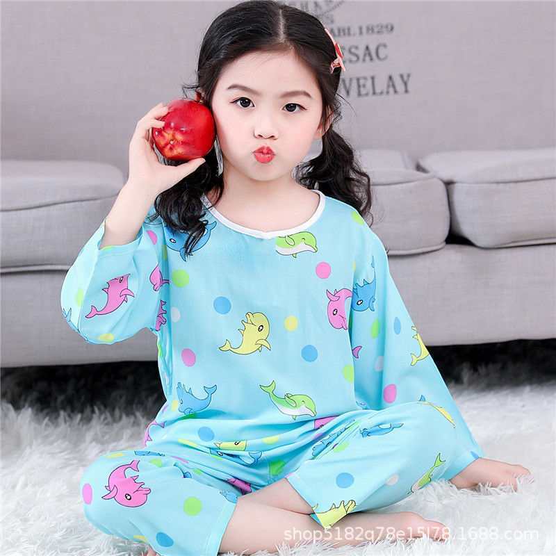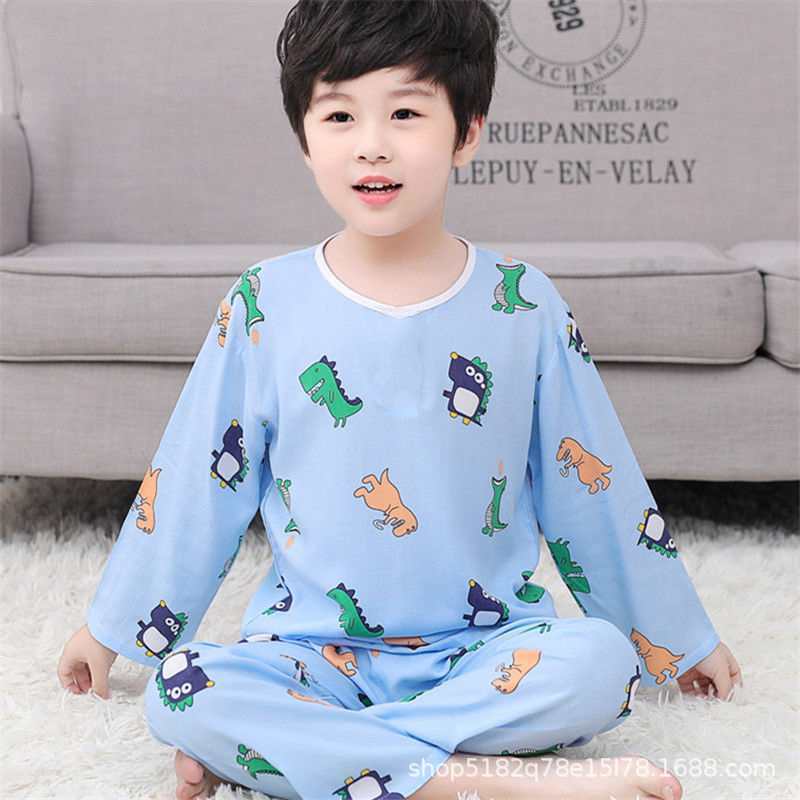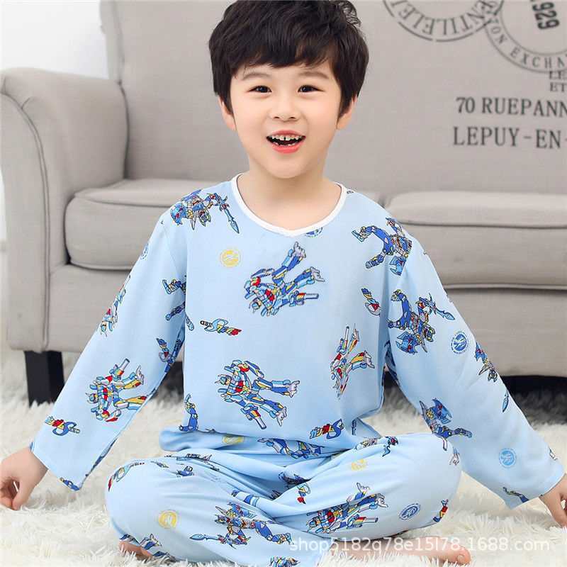 봄과 가을 어린이 잠옷 세트 소년 초등학교 어린이 에어컨 옷 긴 소매 잠옷 세트 가정 의류스토어 가기
