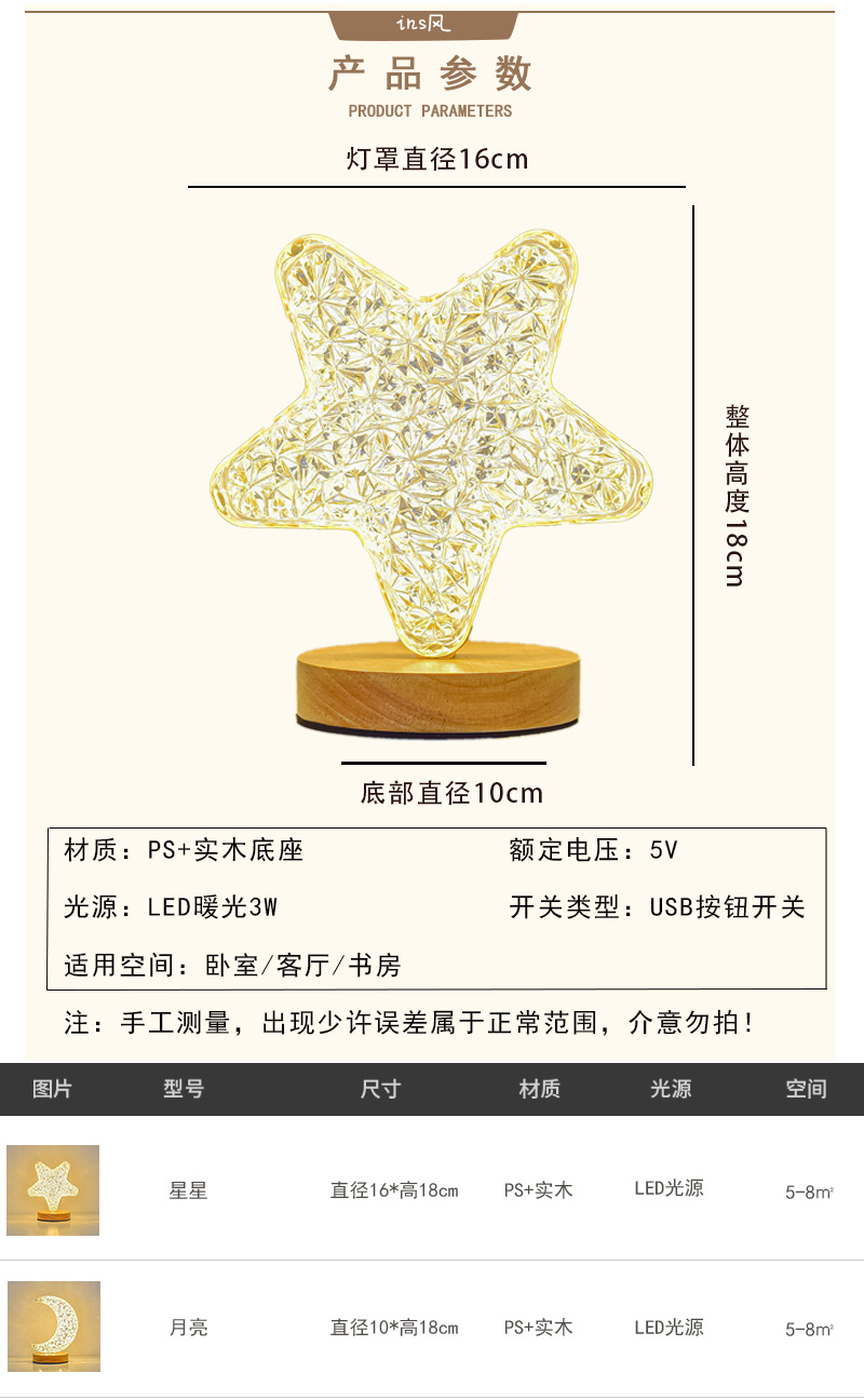 크리 에이 티브 장식품 야간 조명 침실 머리맡 램프 하이 엔드 장식 테이블 램프 인터넷 연예인 기프트 램프 달과 별
