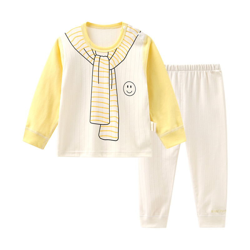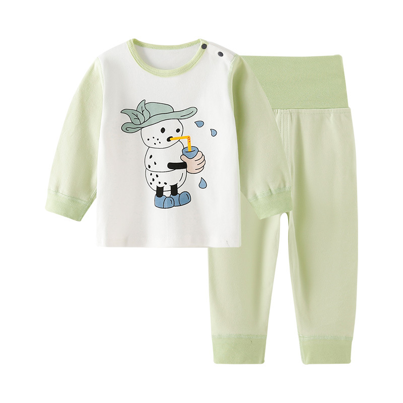 어린이 가을 옷과 바지 세트 면 면 아기 속옷 하이 웨이스트 배꼽 바지 여아 소년 봄과 가을 바지