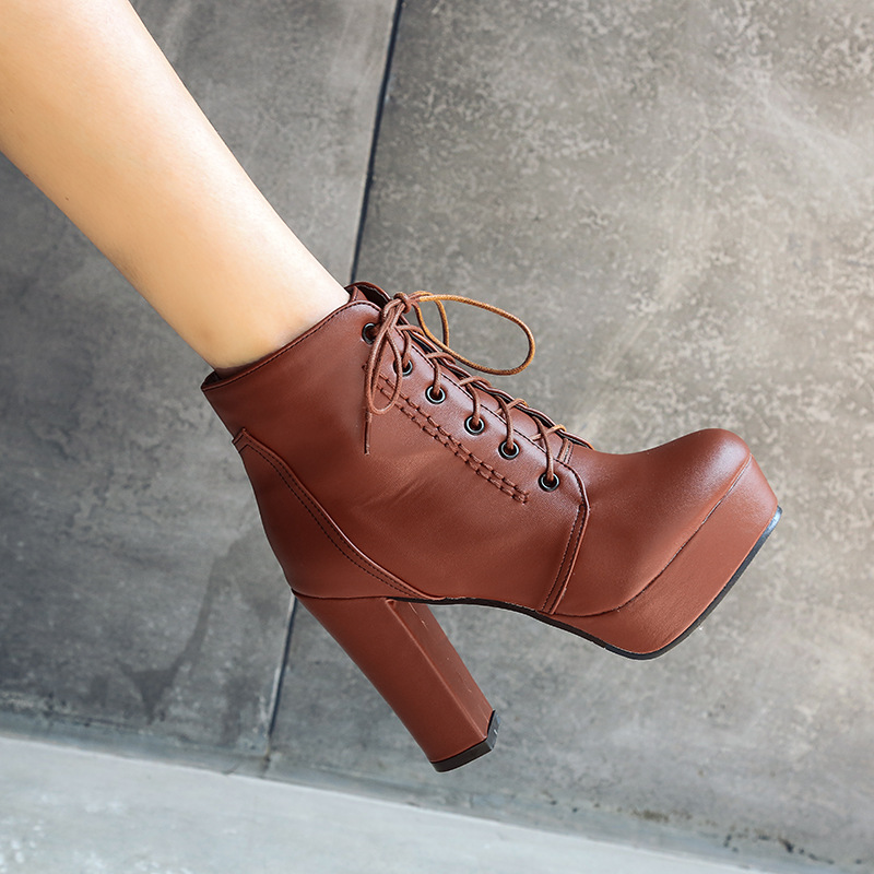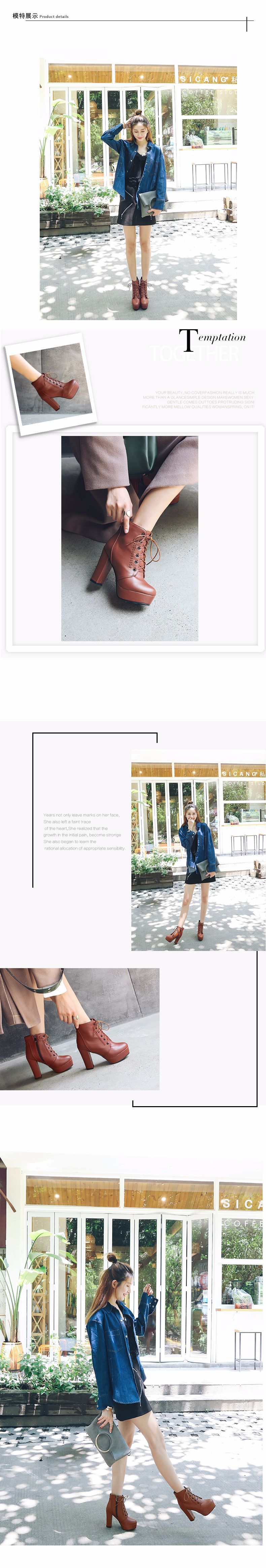 34-48 플러스 사이즈 슈퍼 하이힐 두꺼운 힐 사이드 지퍼 리벳 벨트 버클 장식 방수 플랫폼 짧은 부츠 여성 부츠 해외 무역 D6스토어 가기
