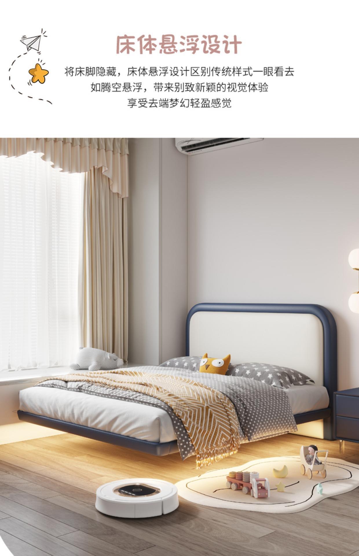 심플 서스펜션 어린이 침대 크리 에이 티브 1.5m 남아 침대 오일 스타일 나파 가죽 어린이 방 북유럽 침대스토어 가기