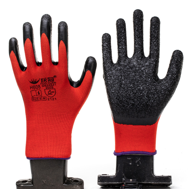 나일론 라텍스 주름 보호 장갑 마모 방지 미끄럼 방지 내구성 담근 장갑 건설 현장에 보호 장갑 제조업체스토어 가기