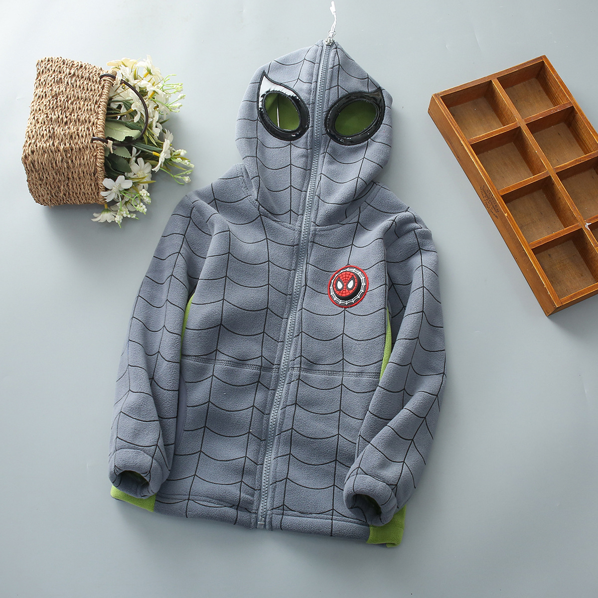 2023 가을과 겨울 어린이 스파이더 맨 플래시 라이트 코트 소년 소녀 및 어린이 후드 탑 올림픽 벨벳 지퍼 셔츠