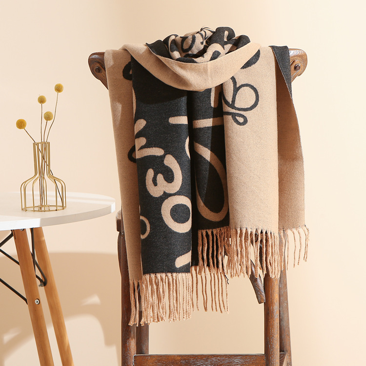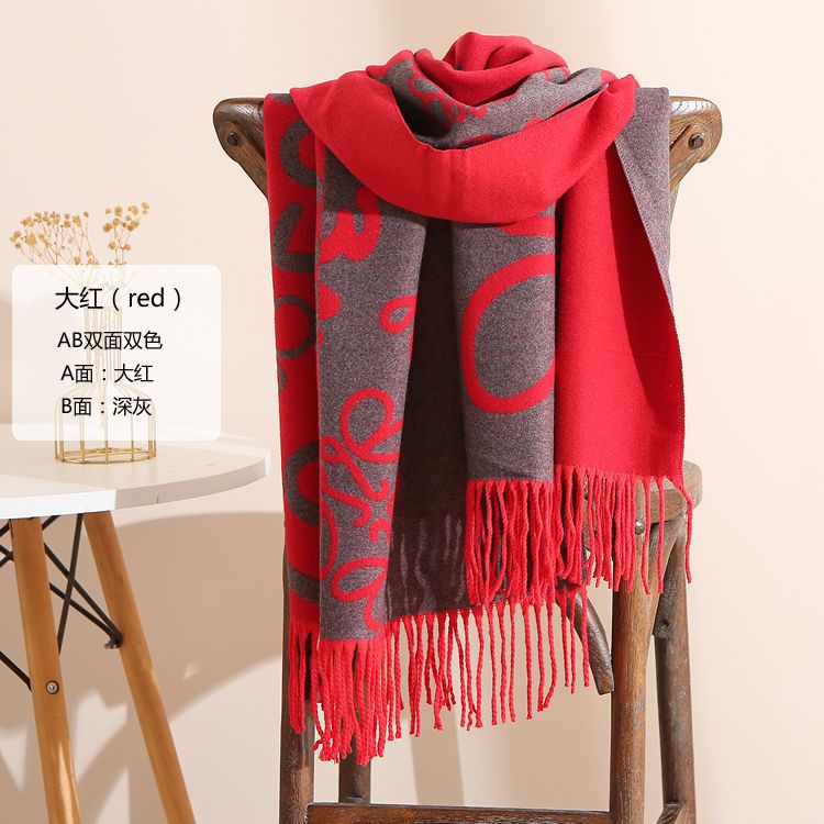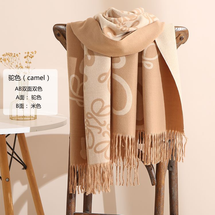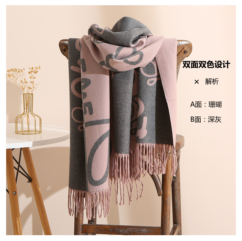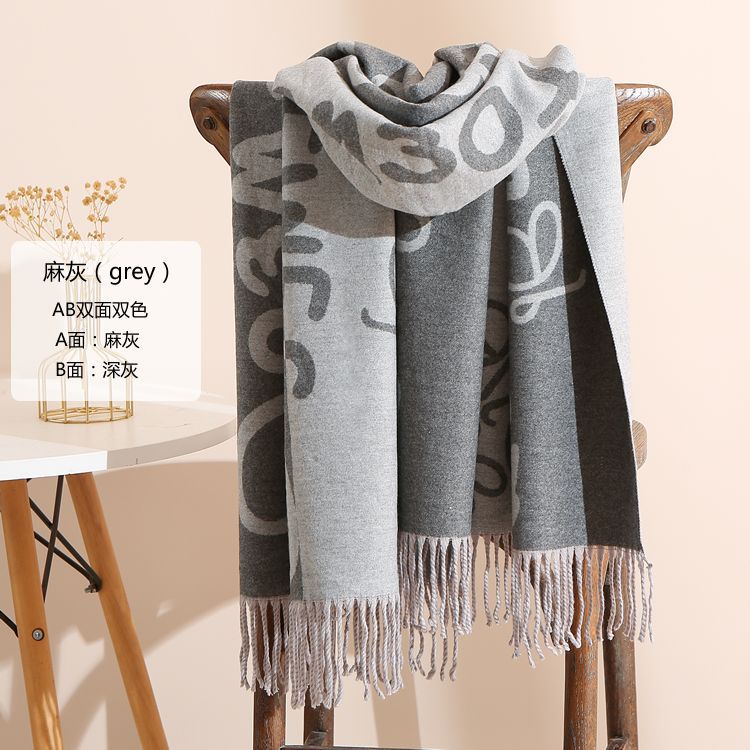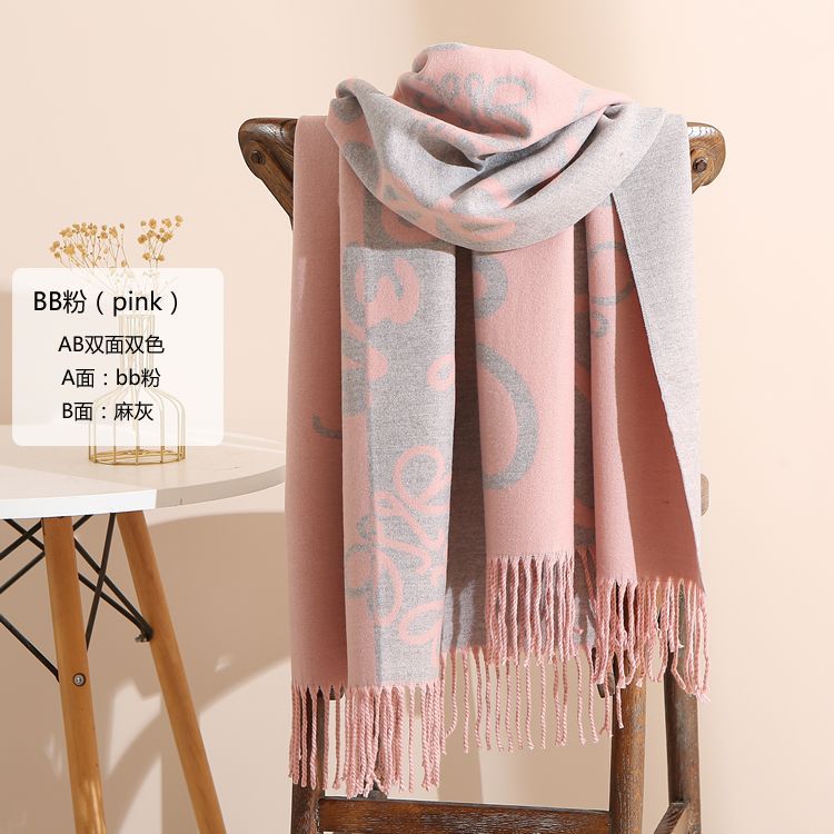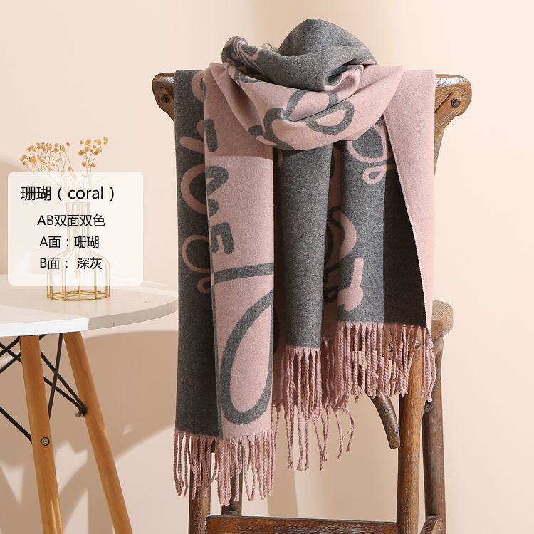 여성용 스카프 신상품 한국 스타일 학생용 겨울 보온 목 보호 스카프 두꺼운 롱 스타일 프린지 양면 인조 캐시미어 숄