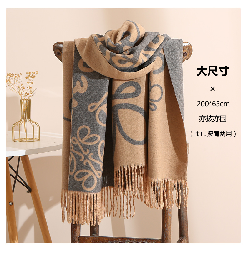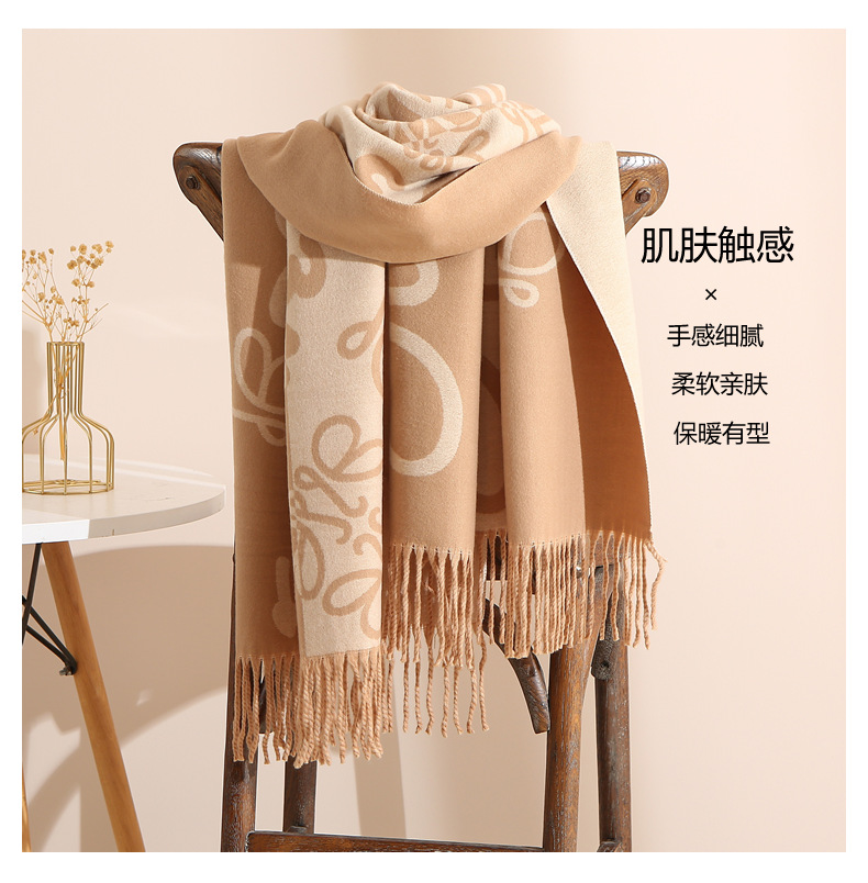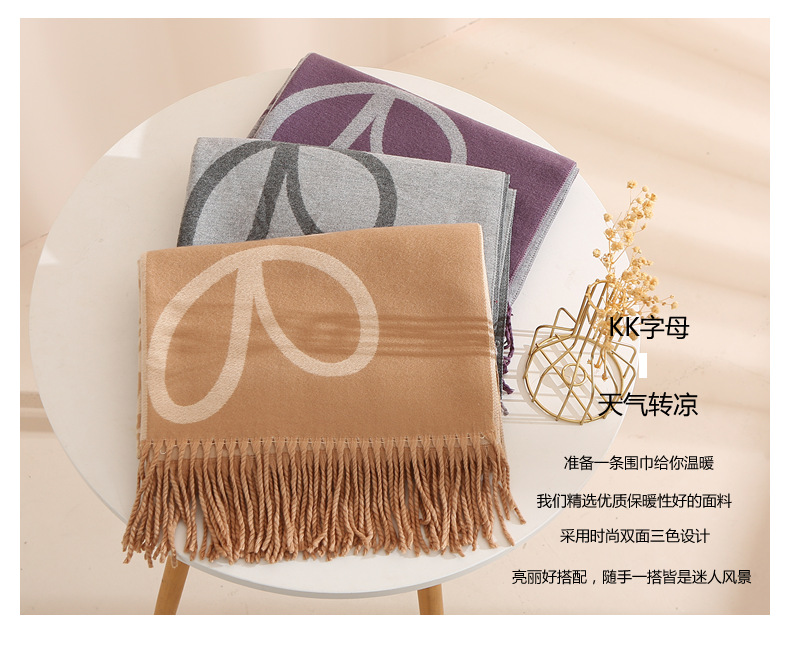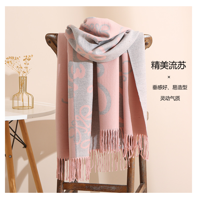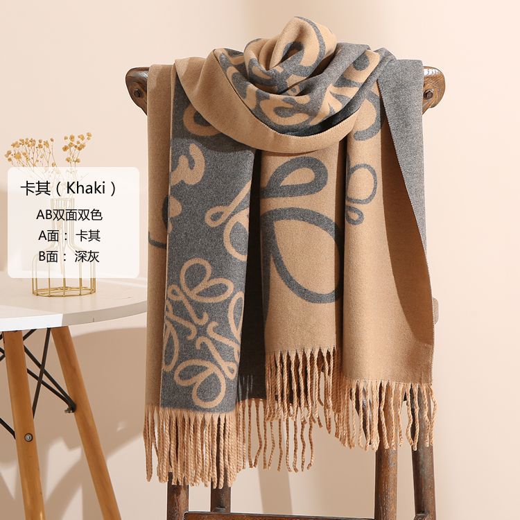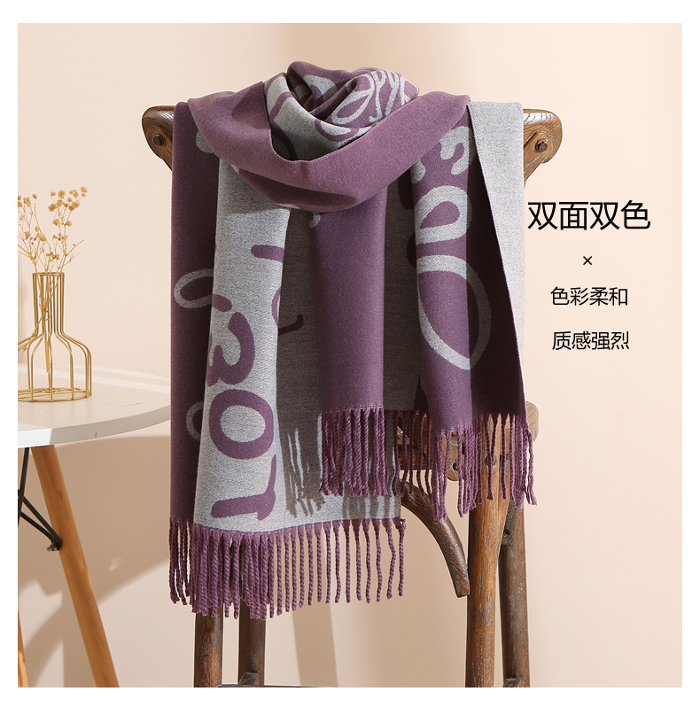 여성용 스카프 신상품 한국 스타일 학생용 겨울 보온 목 보호 스카프 두꺼운 롱 스타일 프린지 양면 인조 캐시미어 숄