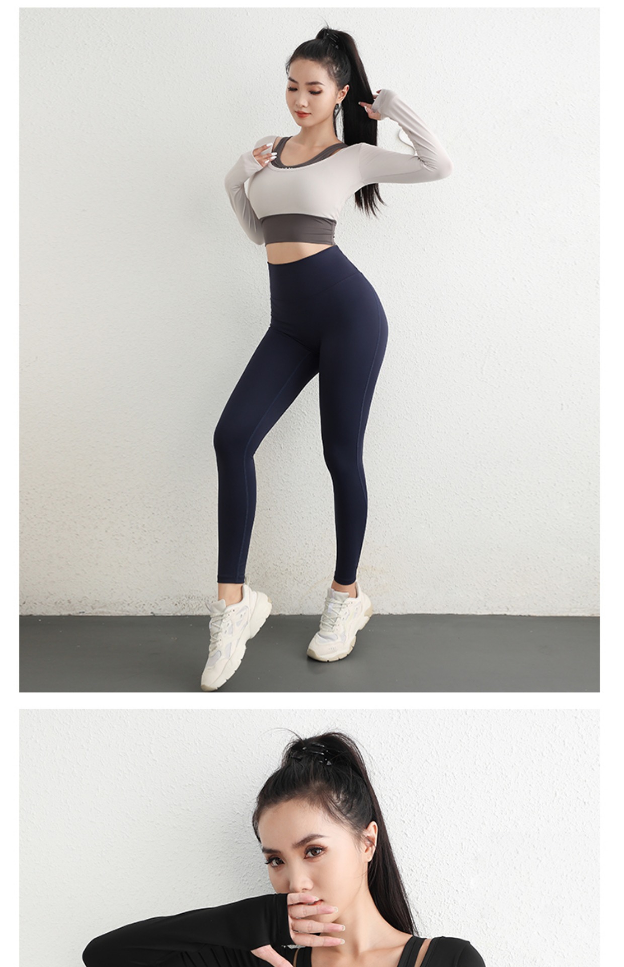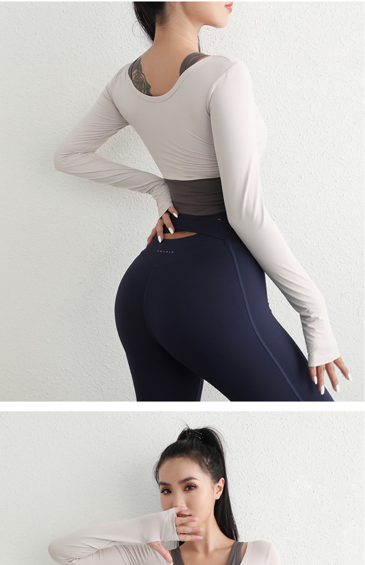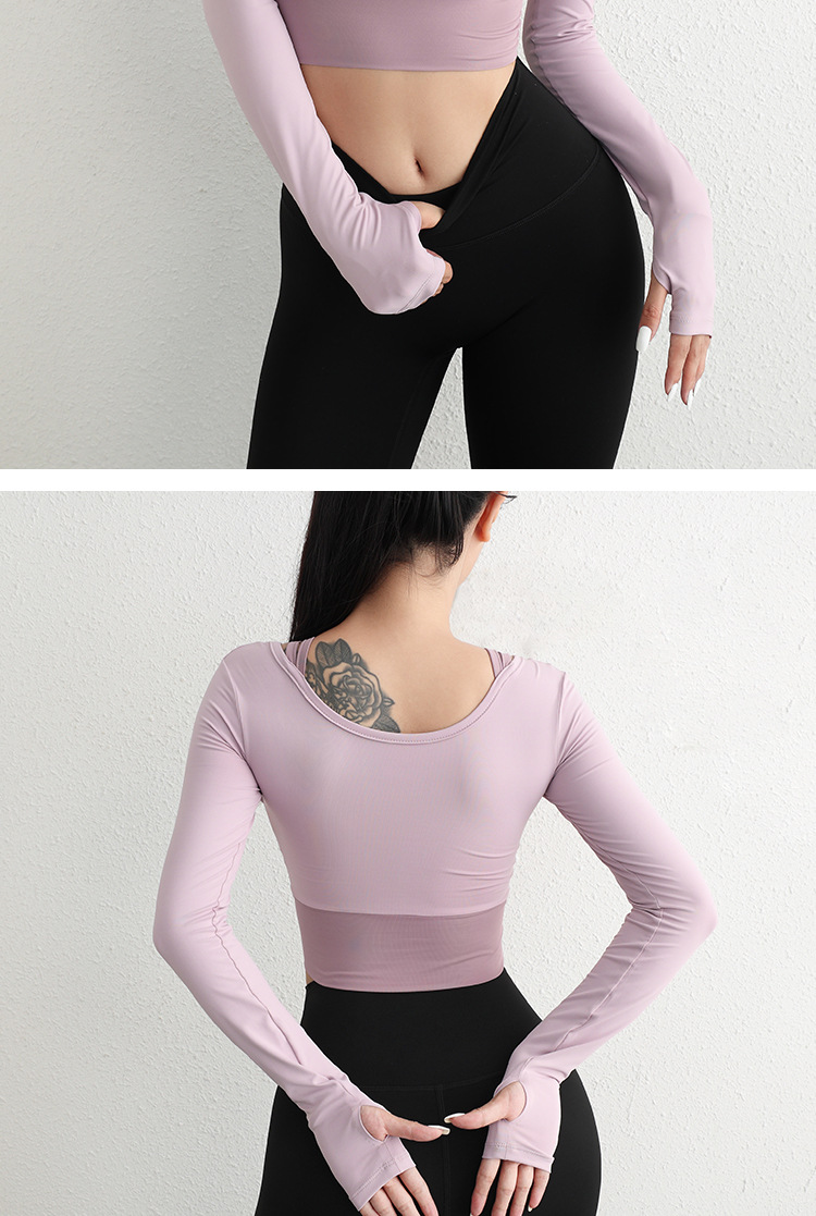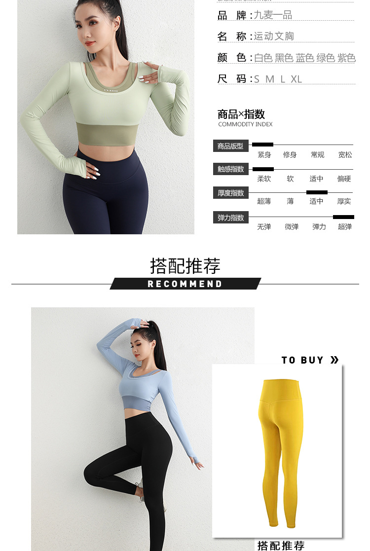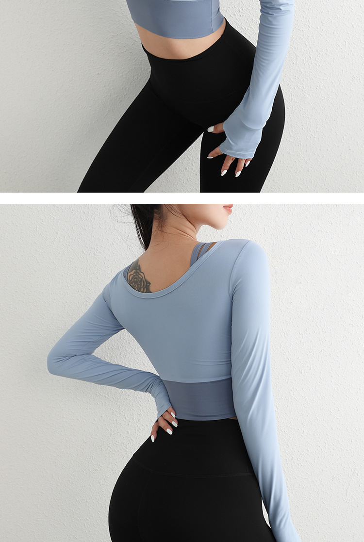 가슴 패드 피트니스와 요가 피트니스 세트 여성의 꽉 끼는 스포츠 가짜 투피스 요가 스포츠 탑 훈련 속건 긴 소매