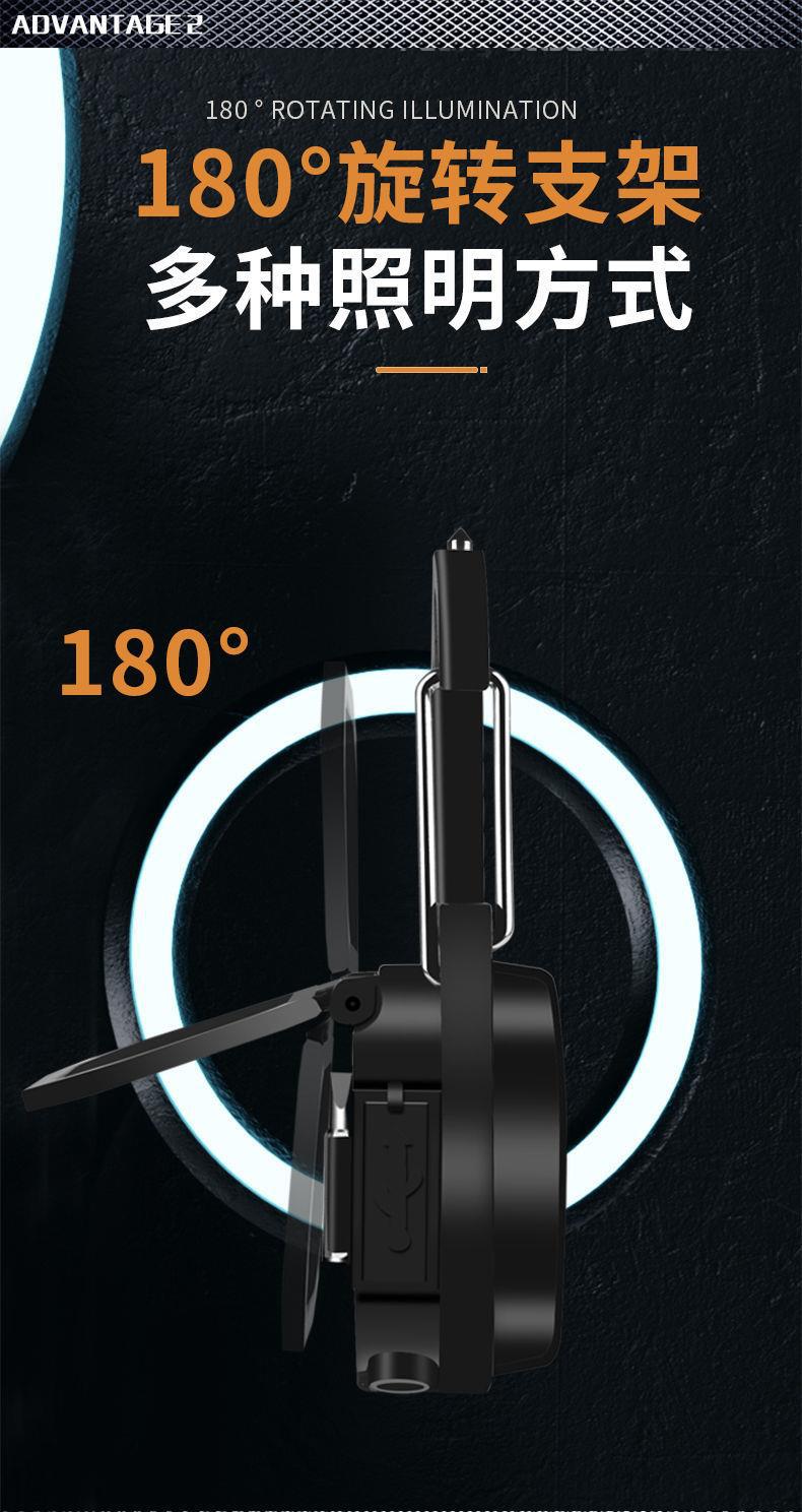 破窗锤、开瓶器、螺丝刀,登山扣、工作灯,扳手,强磁,支架,Type-c接口充电