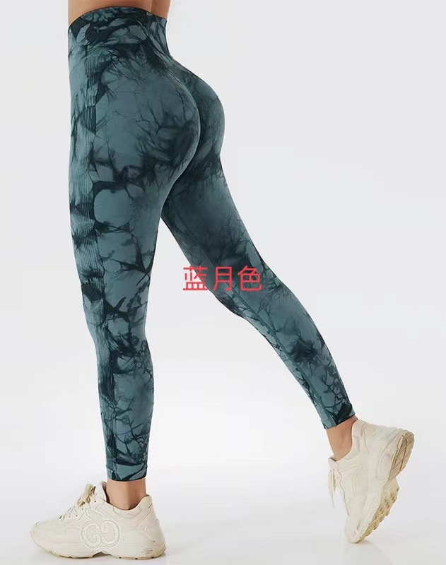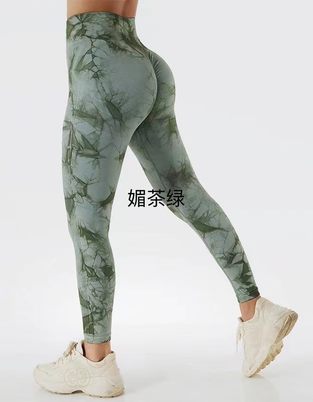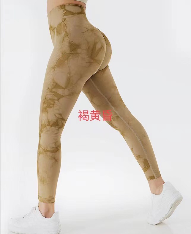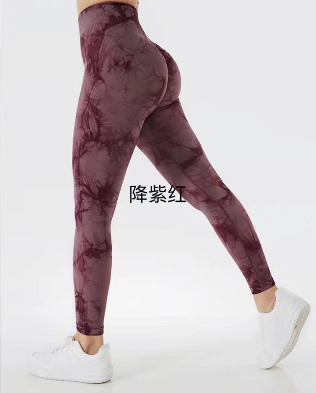 국경 간 유럽과 미국 원활한 타이 다이 염료 요가 바지 하이 웨이스트 복부 스포츠 피트니스 바지 복숭아 엉덩이 꽉 바지 여성