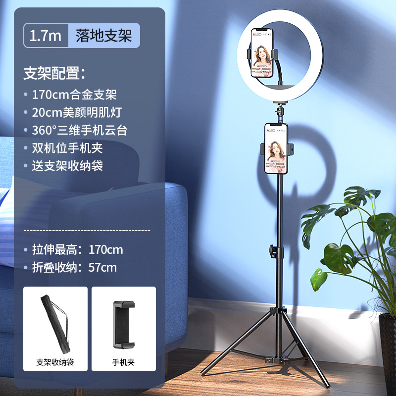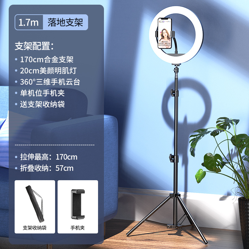 • 1.7m 바닥 삼각대 + 20cm 미용 램프 [싱글 위치]]