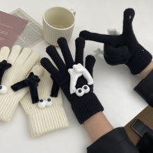 牵手个性可爱分指可触屏秋冬黑白纯色保暖男女通用情侣款针织手套