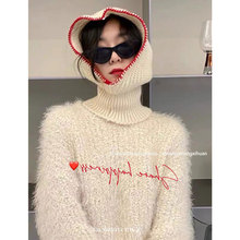 软糯时髦款显脸小秋冬季线围脖帽子一体防风防寒骑行滑雪保暖头套
