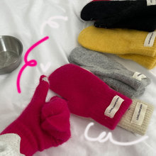 多色韩版ins潮 纯色秋冬季触屏保暖防寒可爱学生包指兔毛针织手套