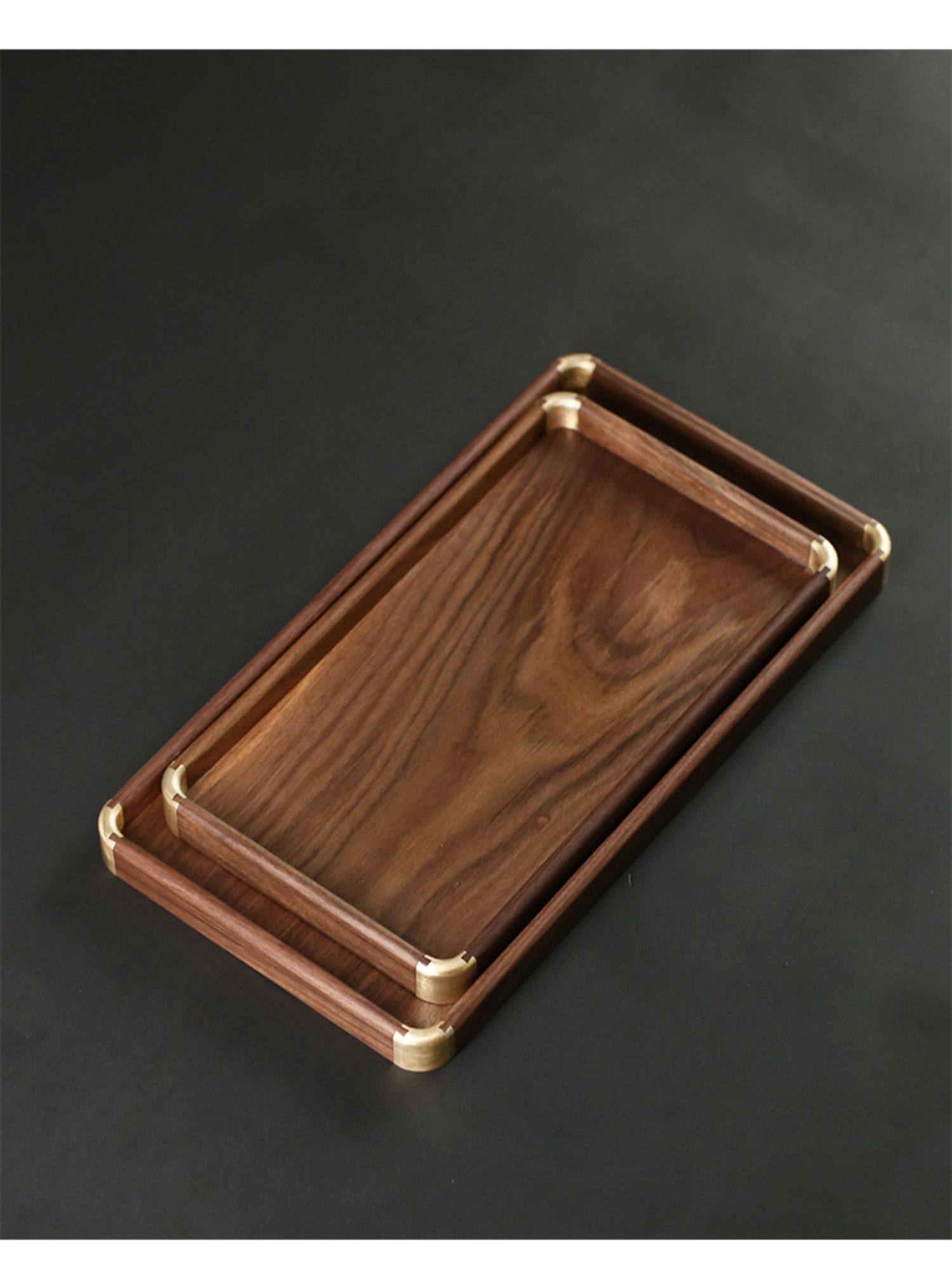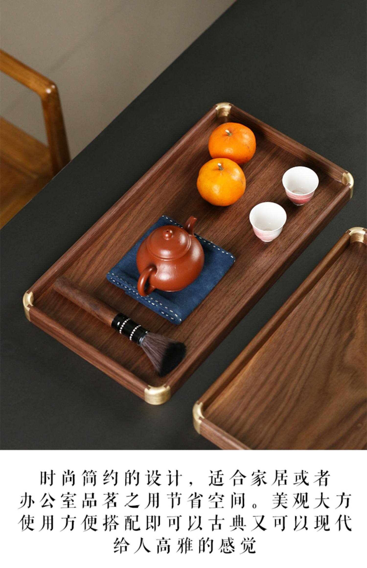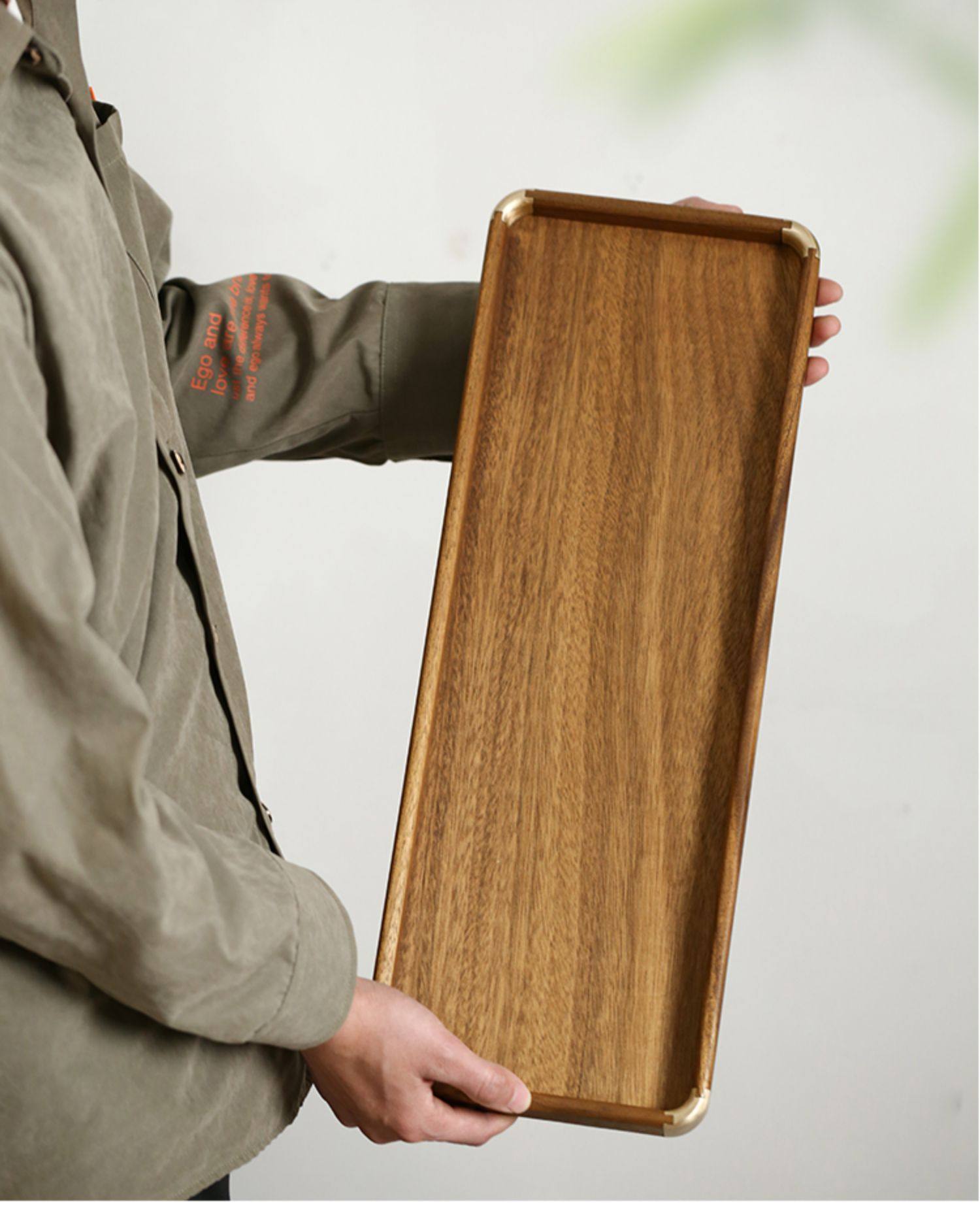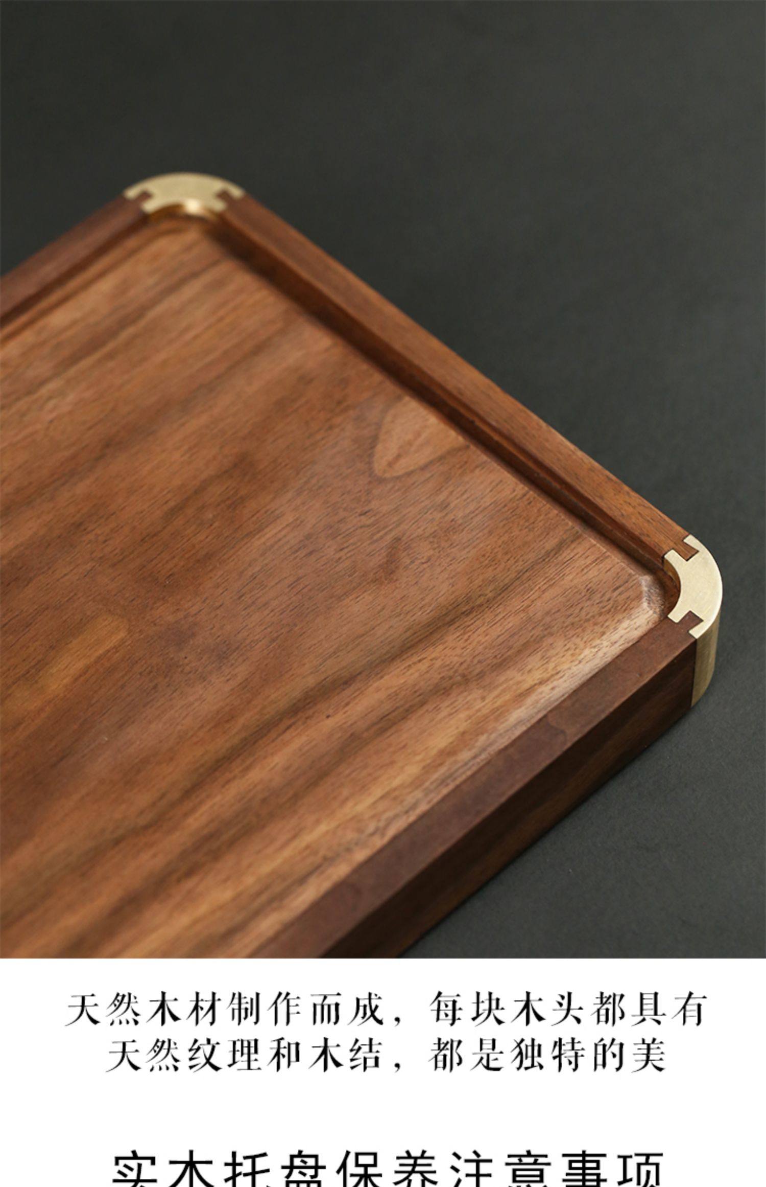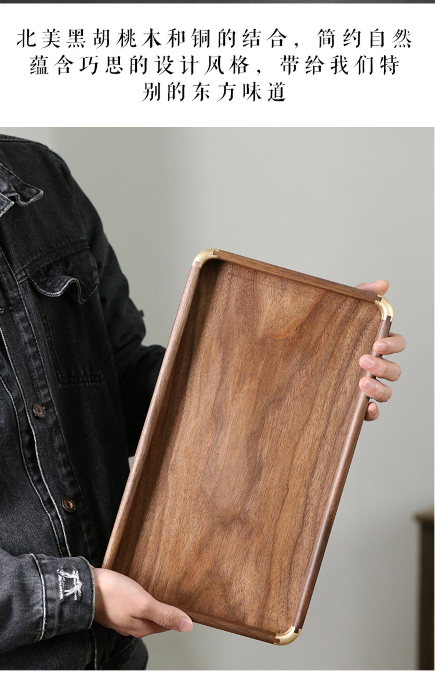 구리 각도와 자연 북미 블랙 호두 티 트레이 간단한 가정용 현대 단단한 나무 직사각형 보관 나무 트레이