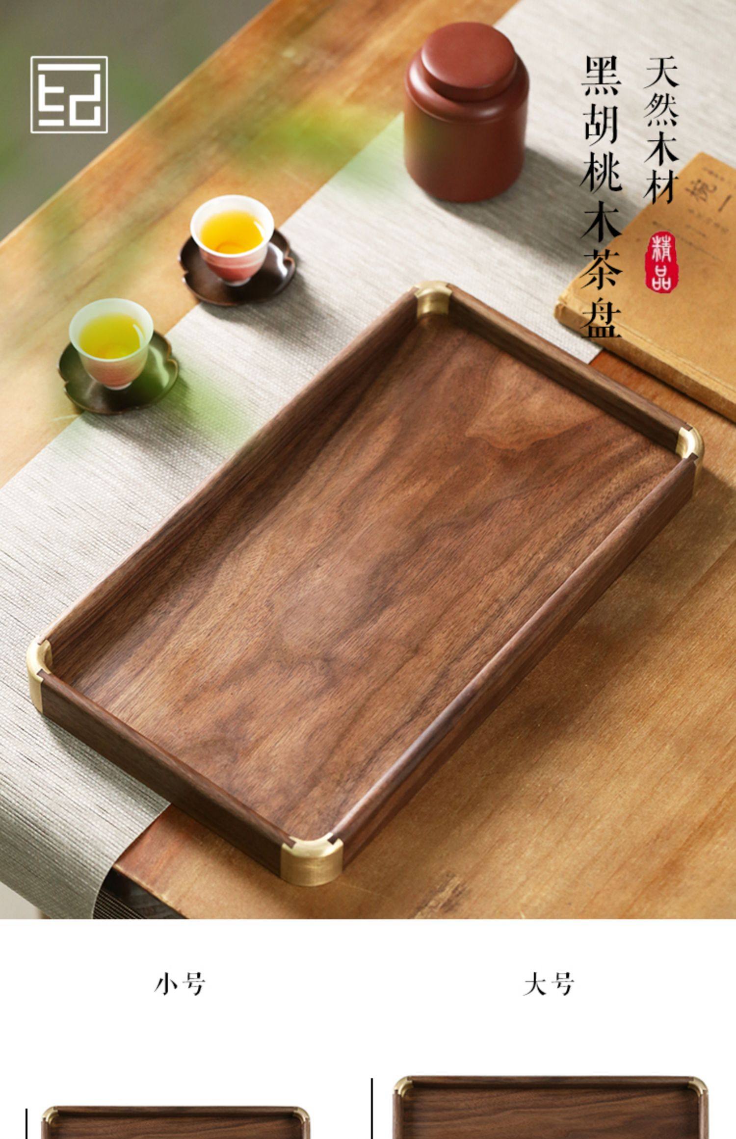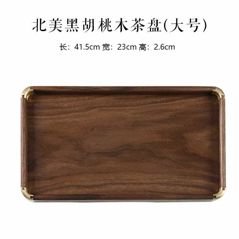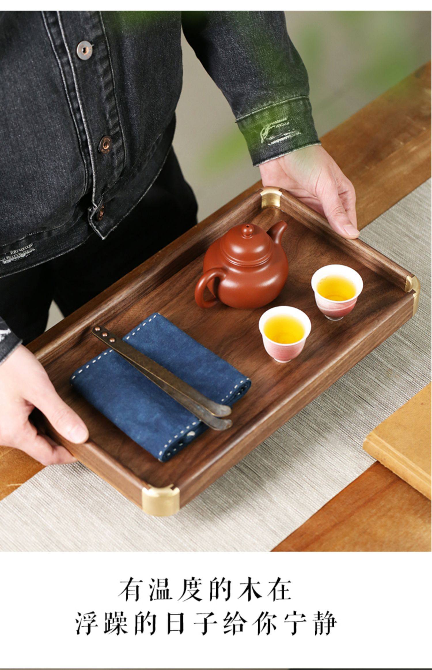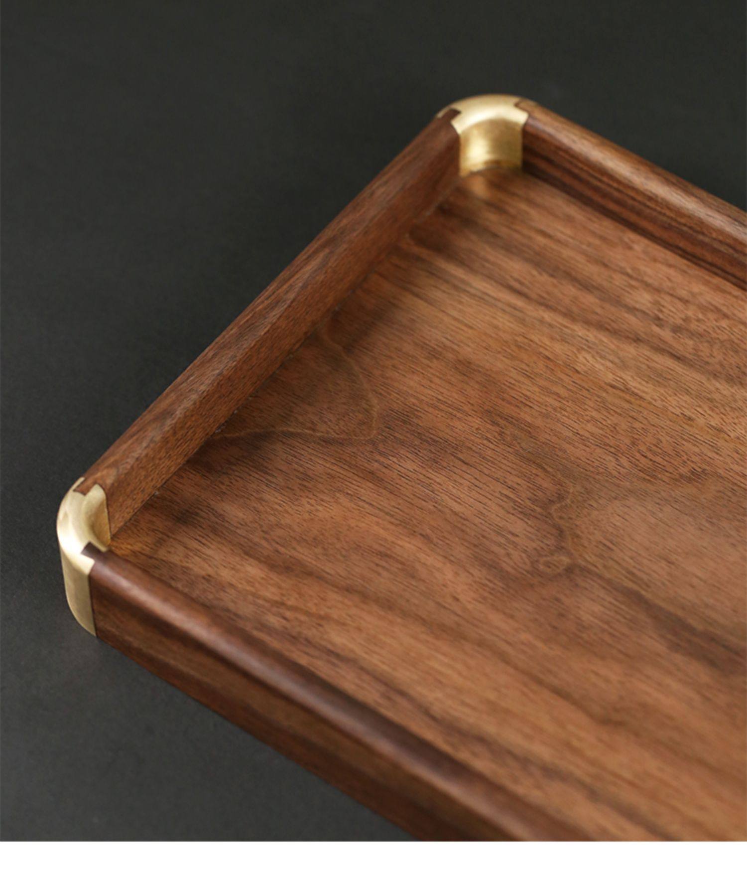 구리 각도와 자연 북미 블랙 호두 티 트레이 간단한 가정용 현대 단단한 나무 직사각형 보관 나무 트레이