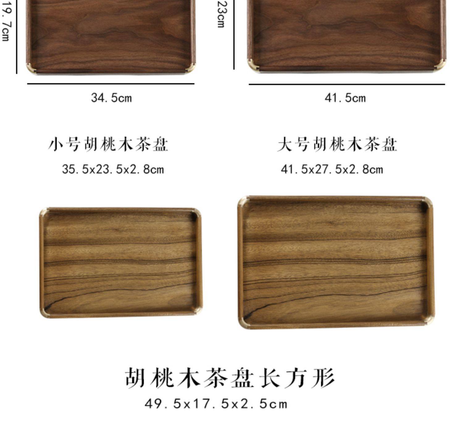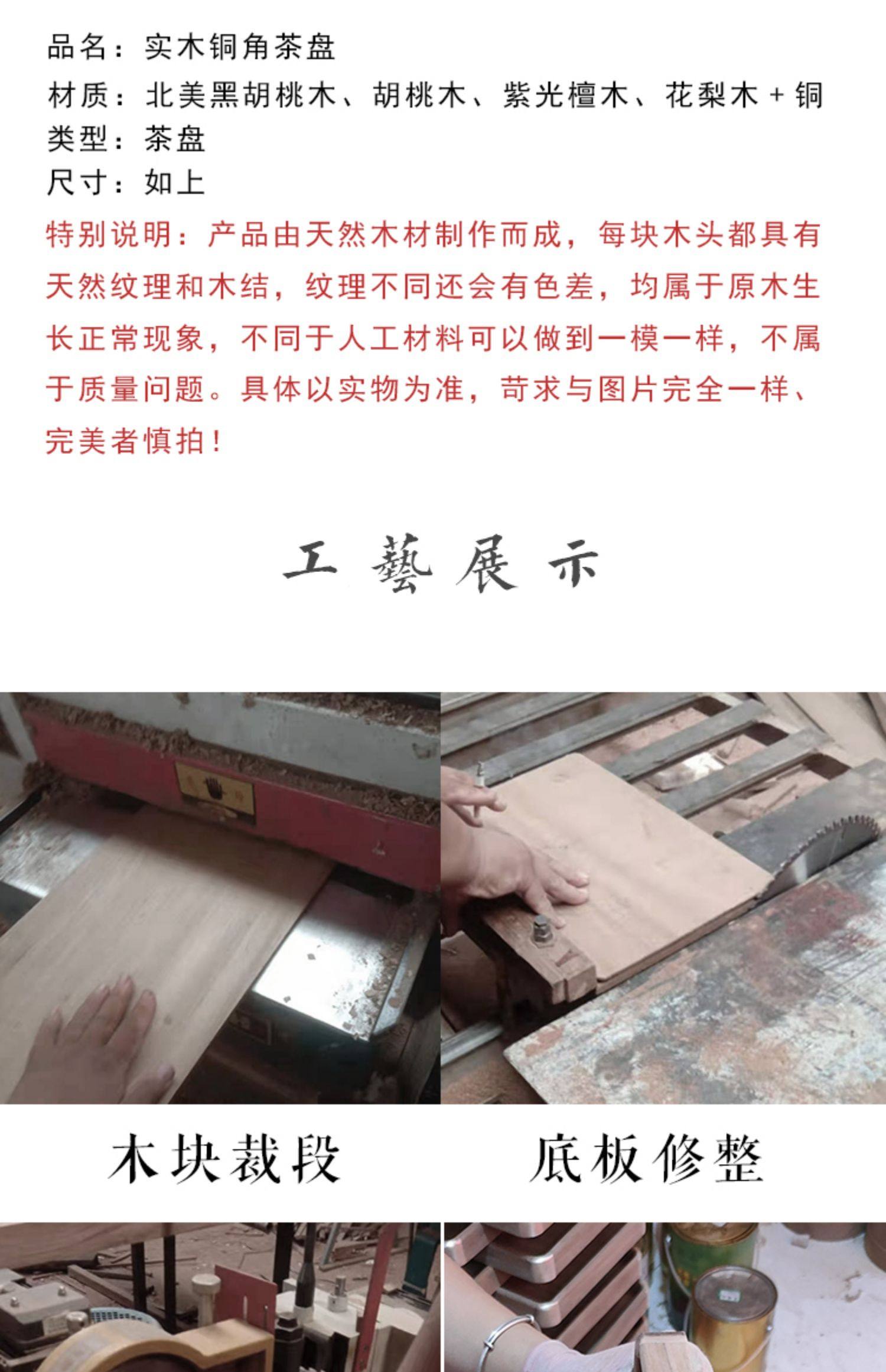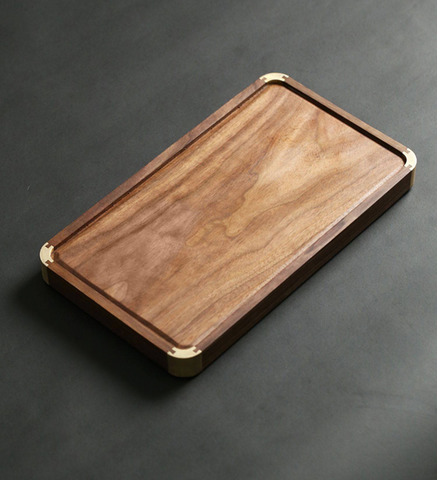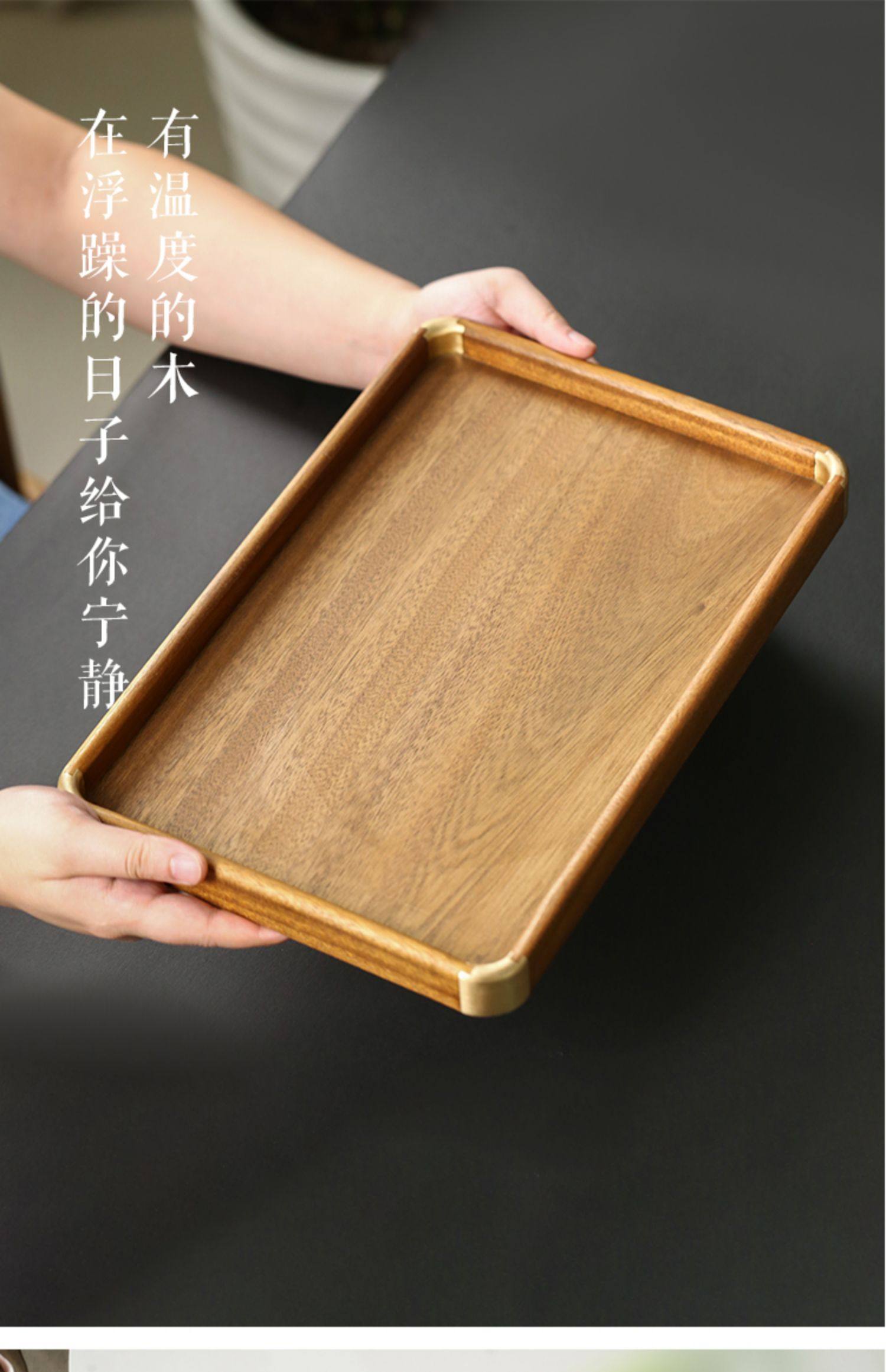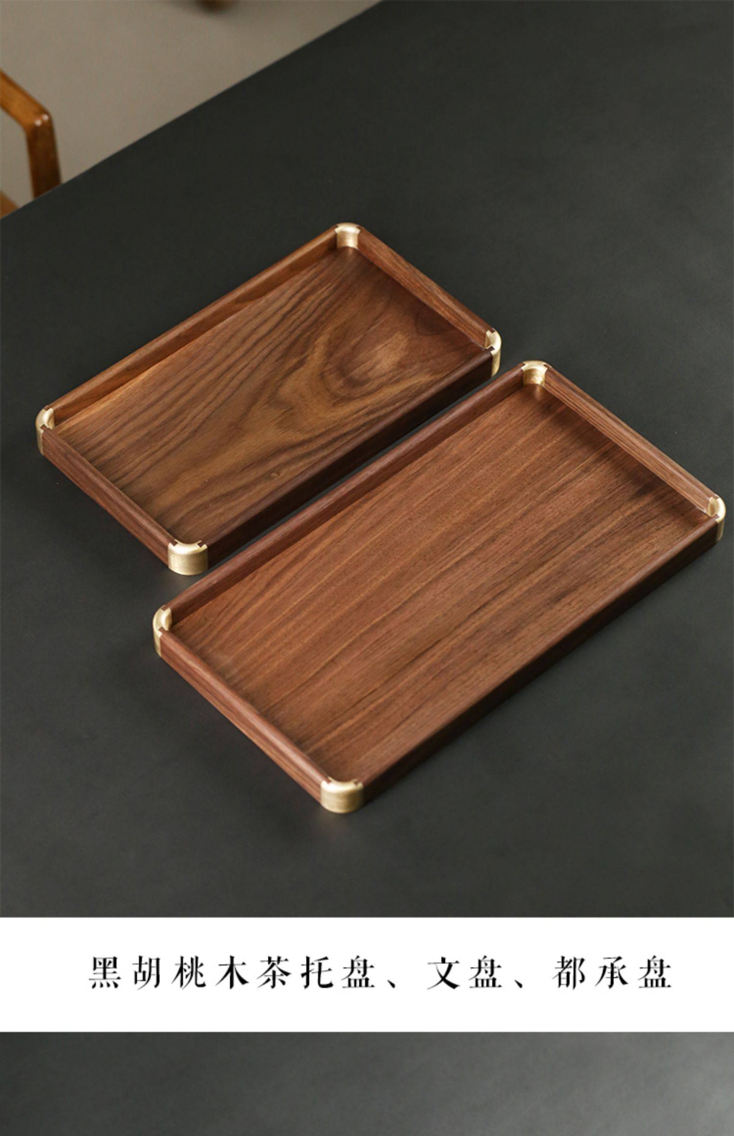 구리 각도와 자연 북미 블랙 호두 티 트레이 간단한 가정용 현대 단단한 나무 직사각형 보관 나무 트레이