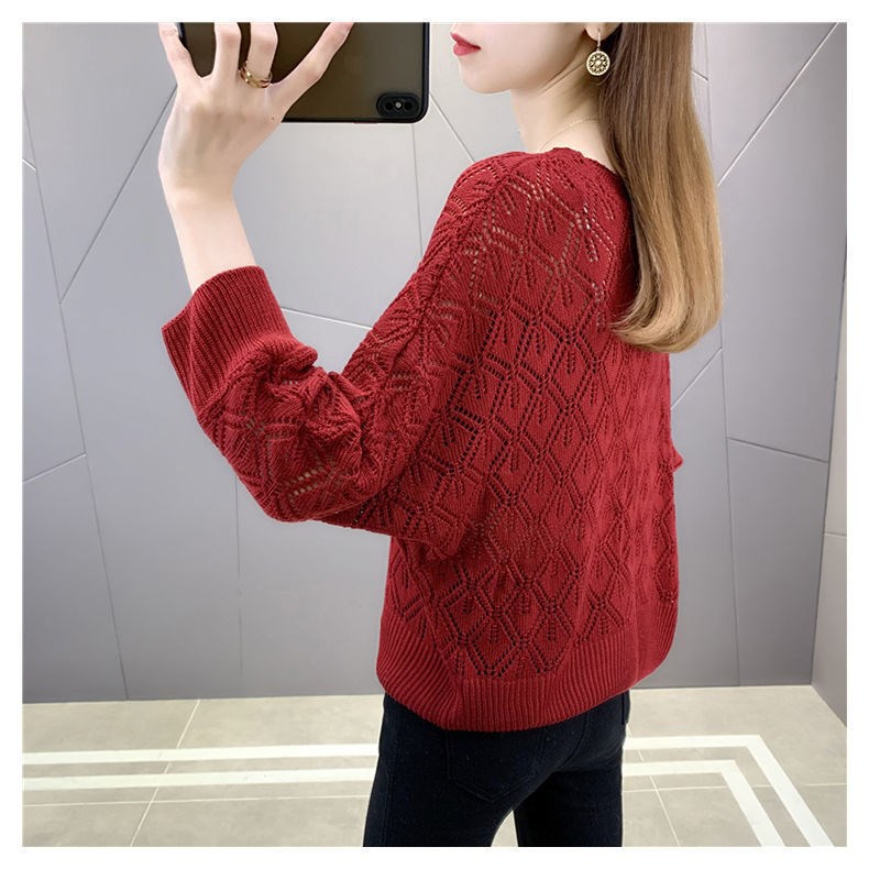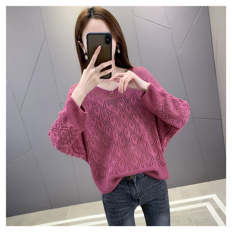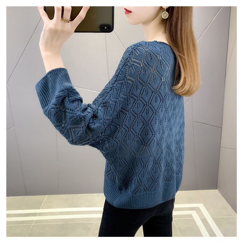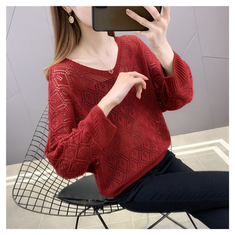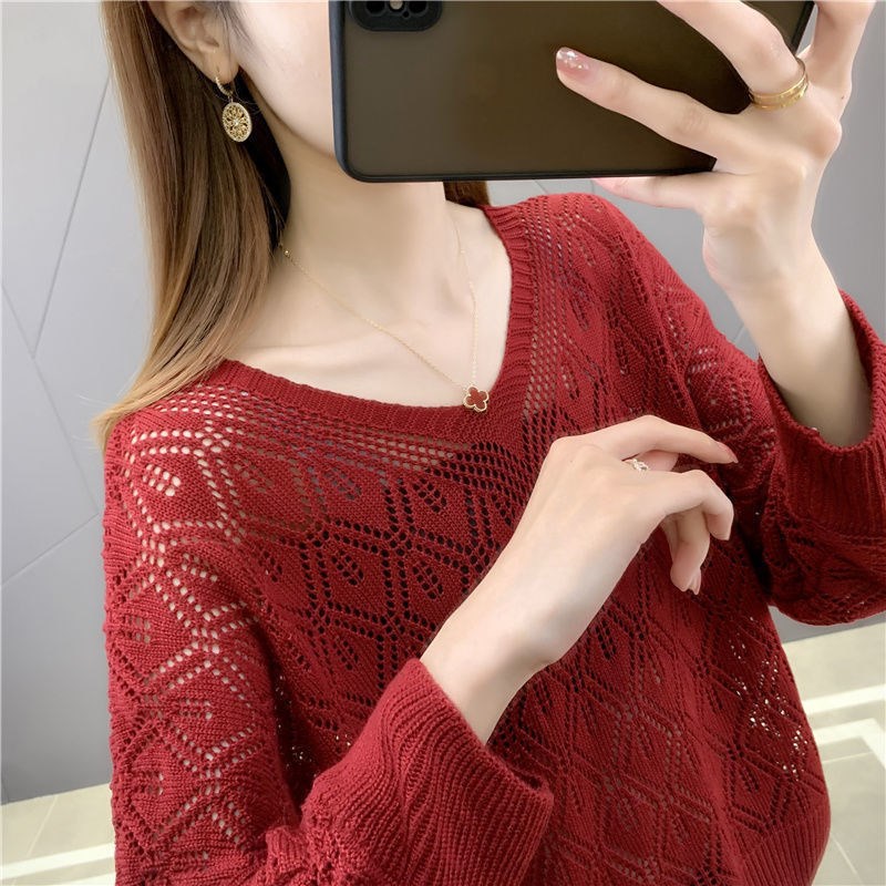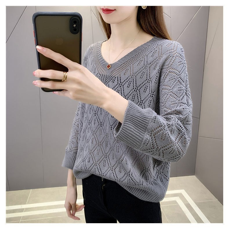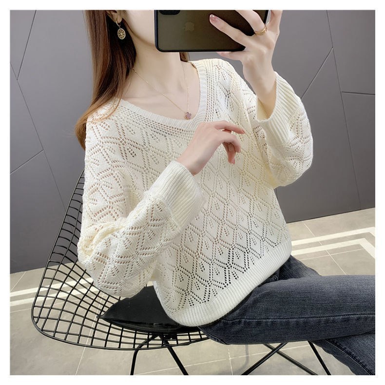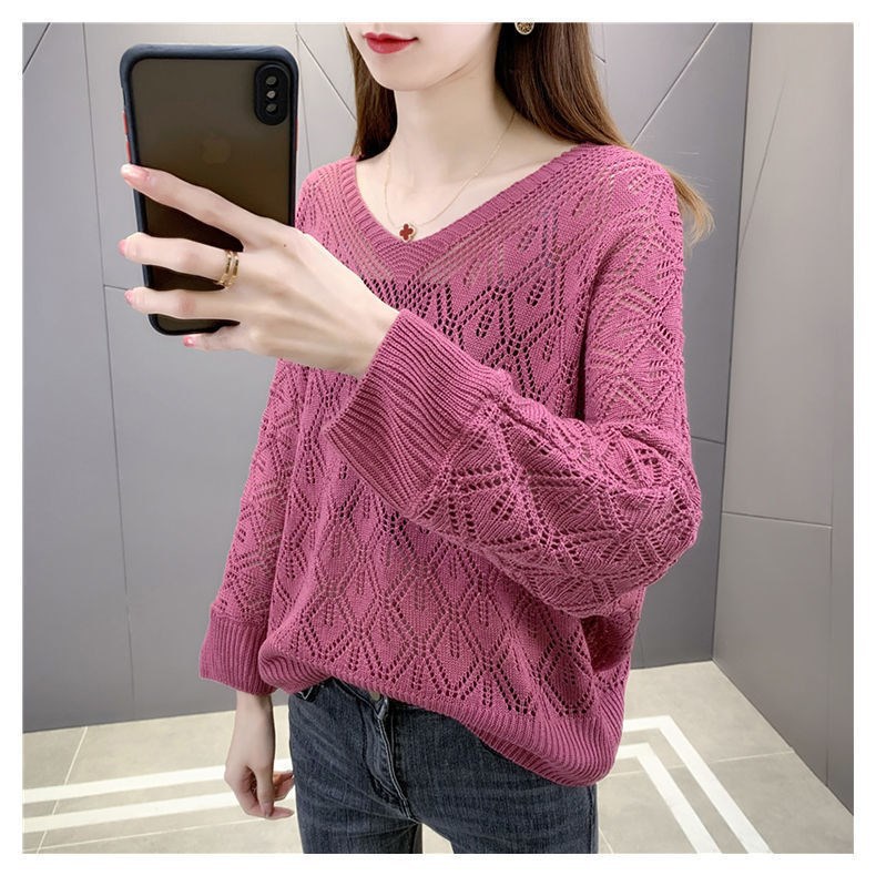 가을 새 옷 얇은 티셔츠 V 넥 중공 바닥 스웨터 여성 느슨한 도매 여성 탑