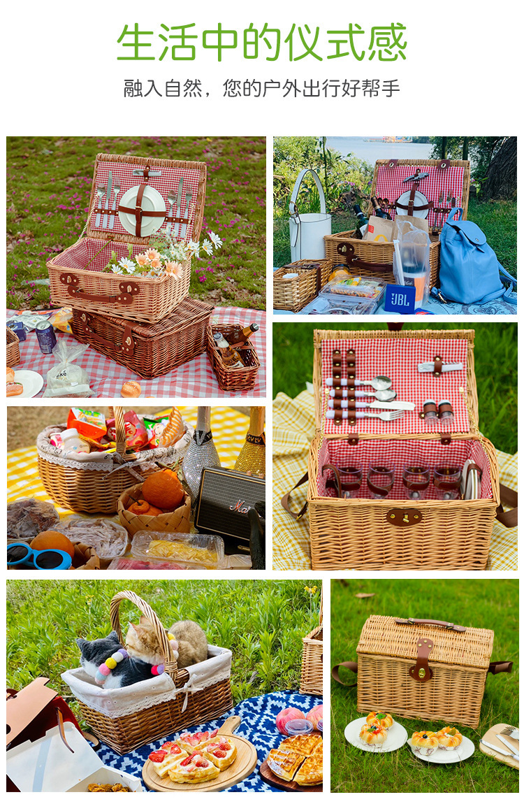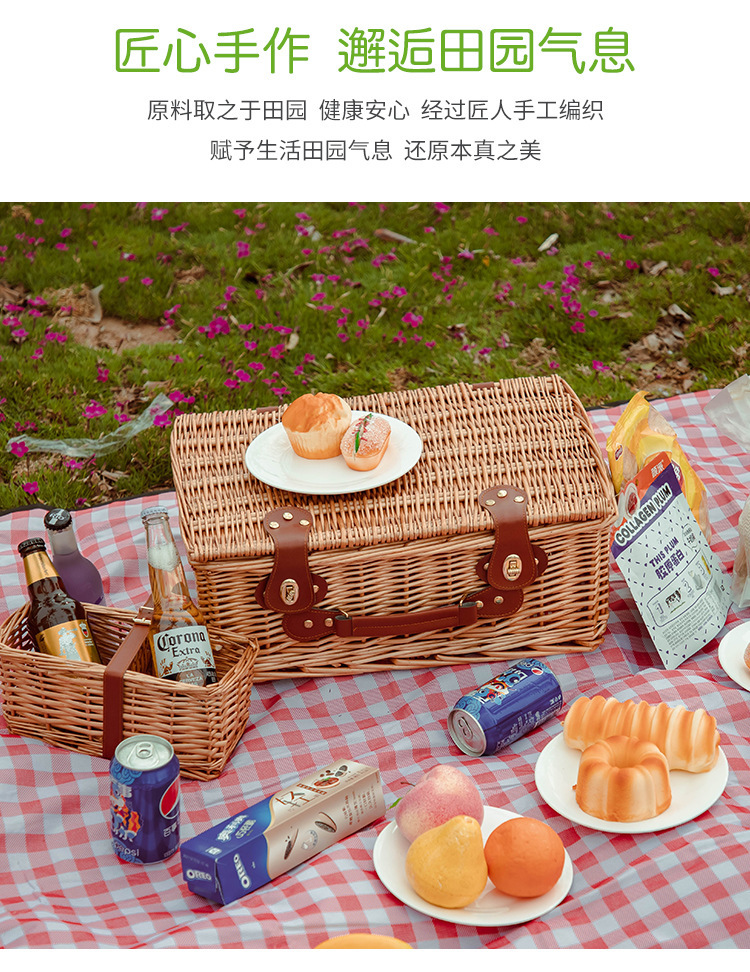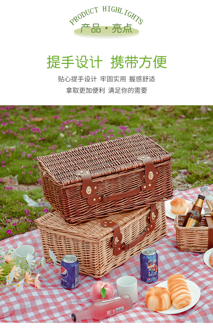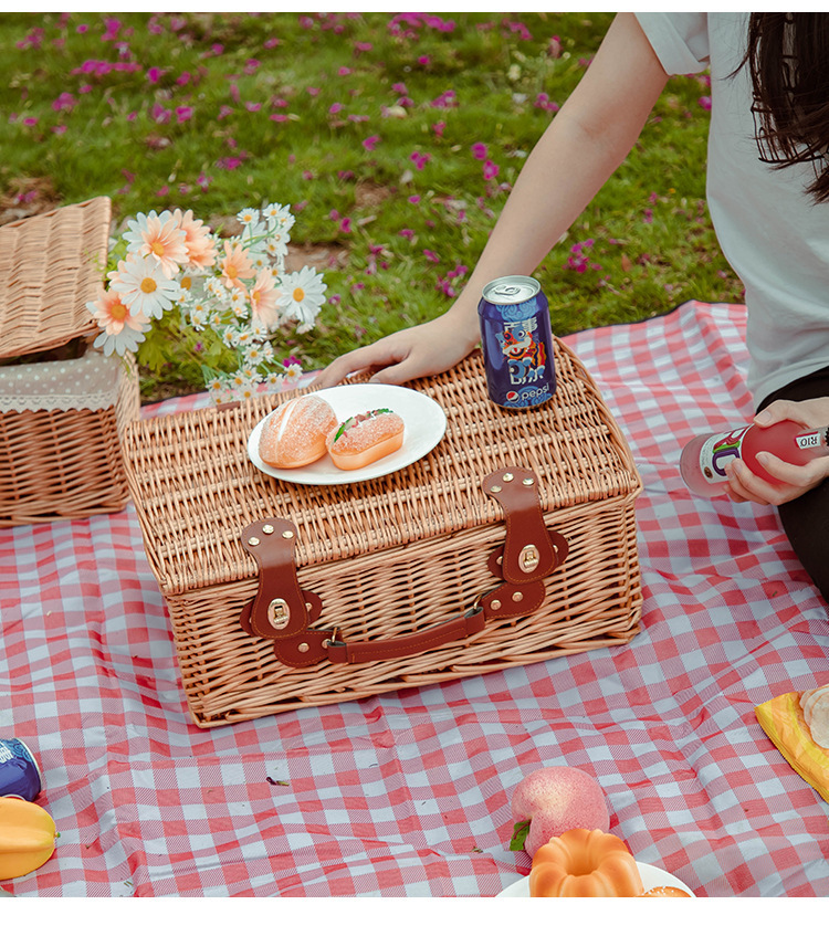 국경 간 손으로 짠 피크닉 가방 윌로우 피크닉 바구니 야외 과일 음식 저장 단열 피크닉 가방 재고스토어 가기