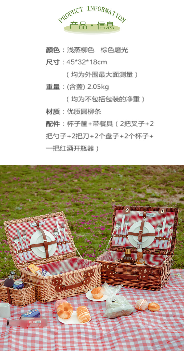 • 피크닉 바스켓 라이트 찜 버드나무 (식기 플레이스매트포함)