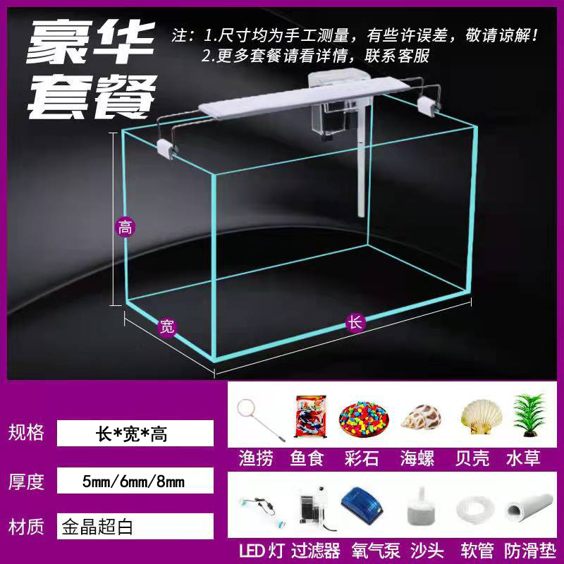 거실 작은 슈퍼 화이트 물고기 탱크 고화질 유리 물 잔디 탱크 직사각형 물 무료 풍경 탱크 데스크탑 게으른 물고기 탱크스토어 가기