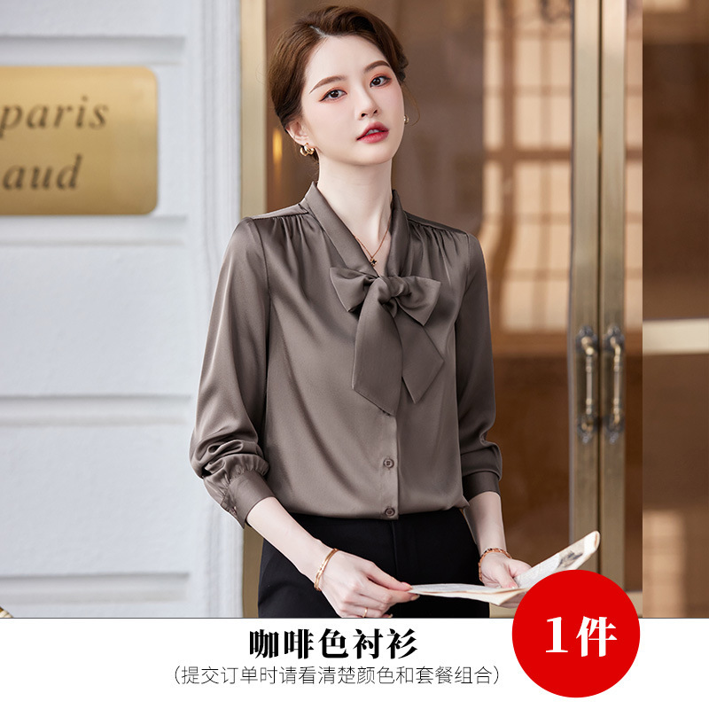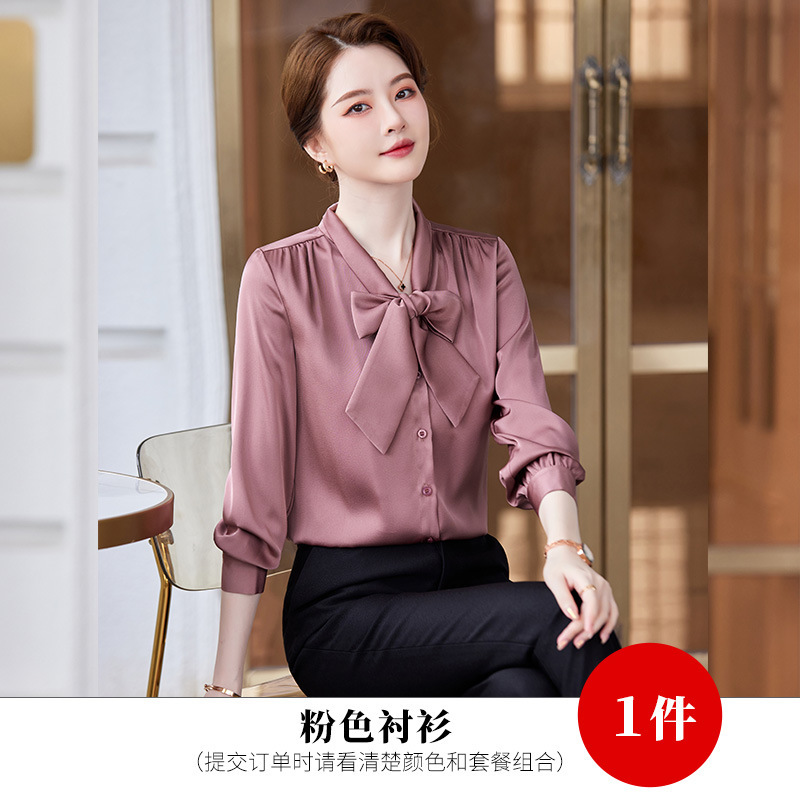 GS855 보우 화이트 셔츠 여성용 긴팔 셔츠 가을 탑 V-넥 쉬폰 셔츠 여성용 전문 셔츠스토어 가기