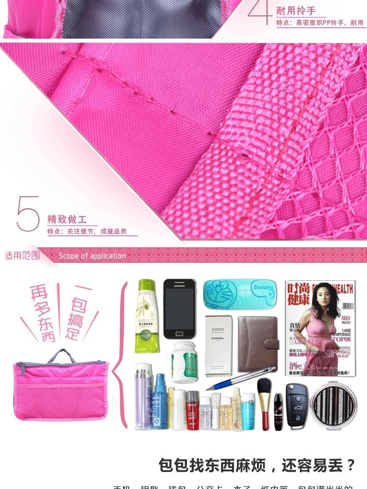 다기능 이중 접이식 수납 가방, 대용량 핸드백, 두꺼운 분류 가방, 여행용 디지털 가방, 중형 수납 가방