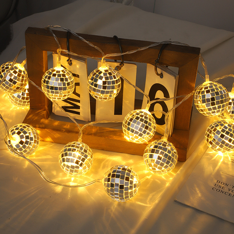 크로스 보더 LED 미러 볼 라이트 스트링 바 분위기 장식 빛 모자이크 볼 크리스마스 휴일 장식 방 조명스토어 가기