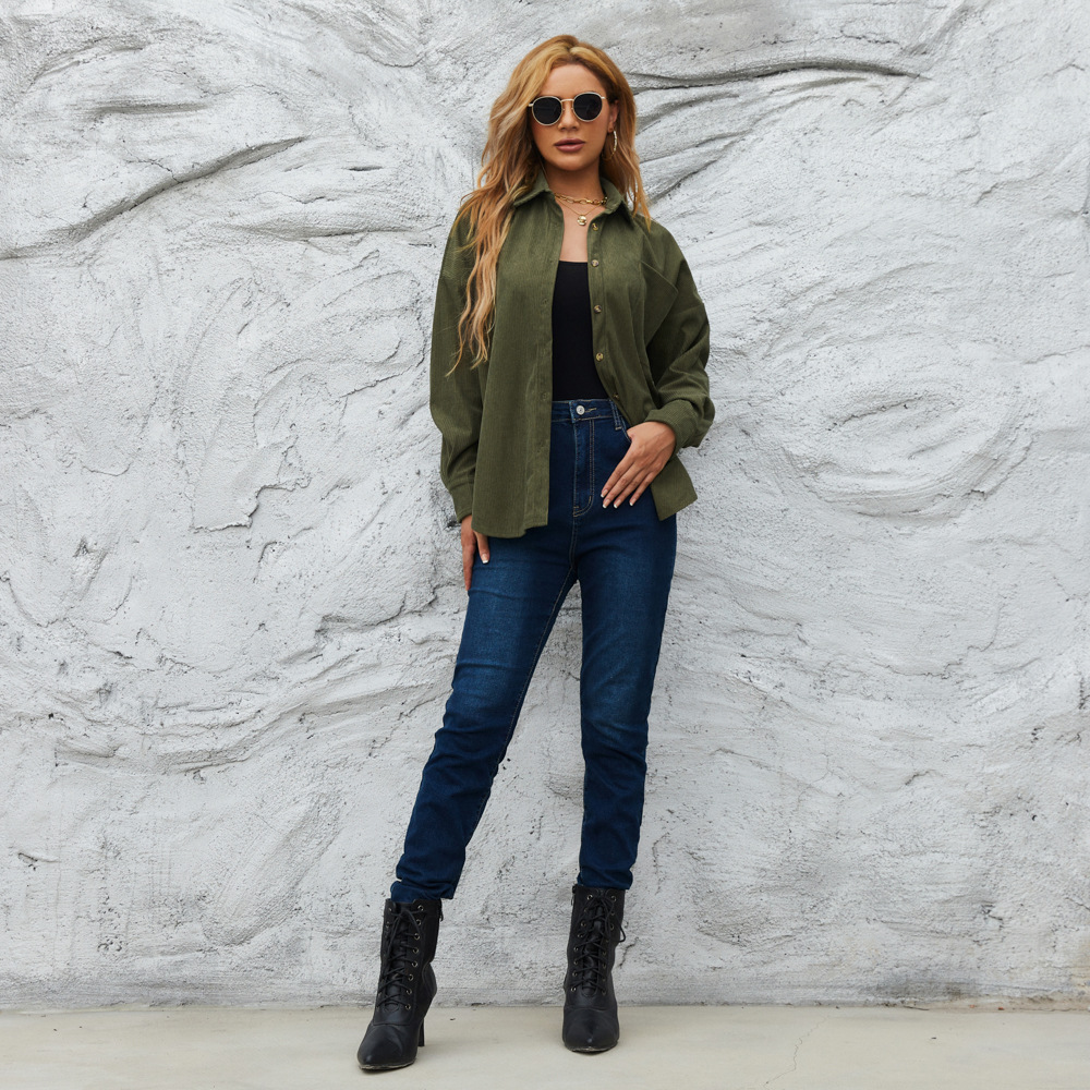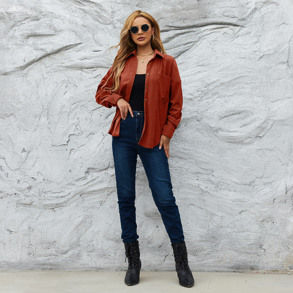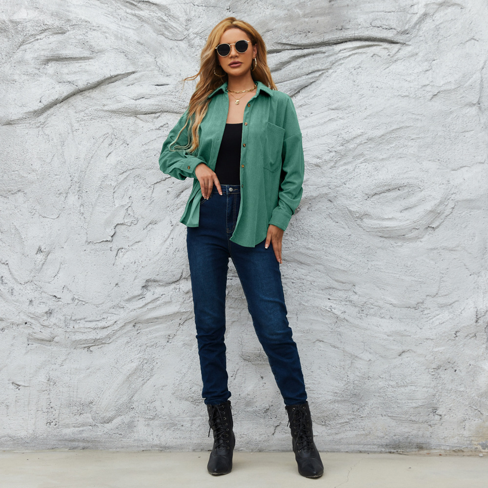 2022 새로운 크로스 보더 가디건 탑 여성 가을과 겨울 코듀로이 여성용 아메리칸 스타일 루즈한 재킷 코트 단색 셔츠